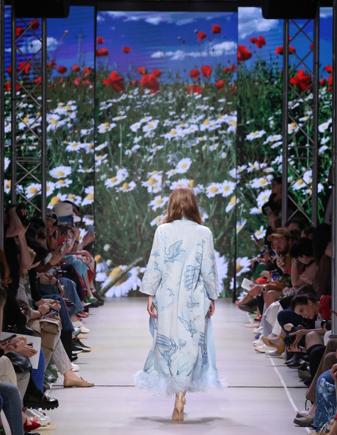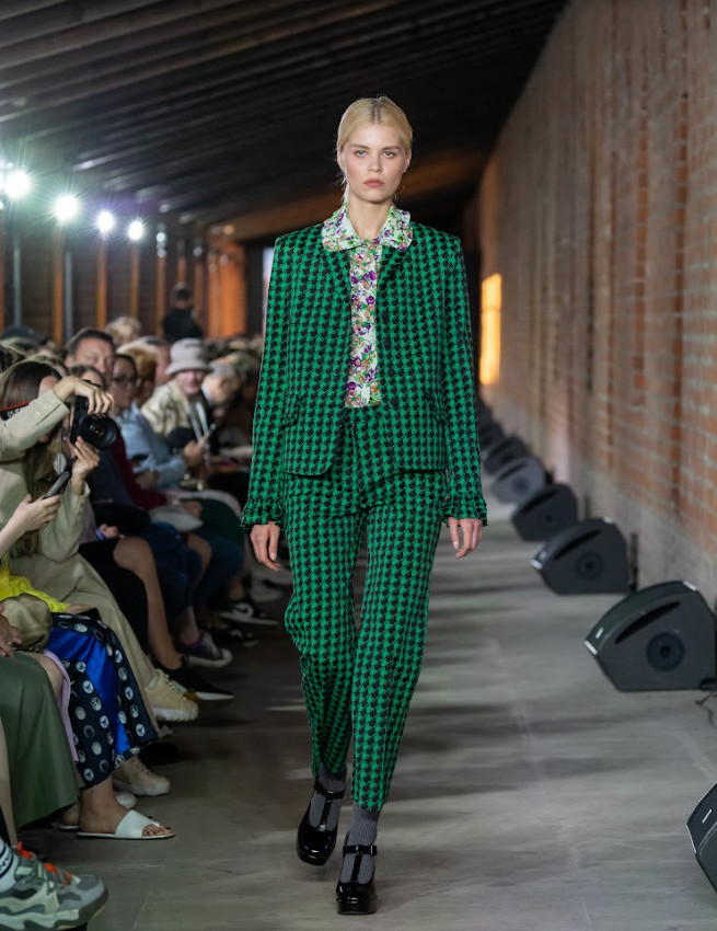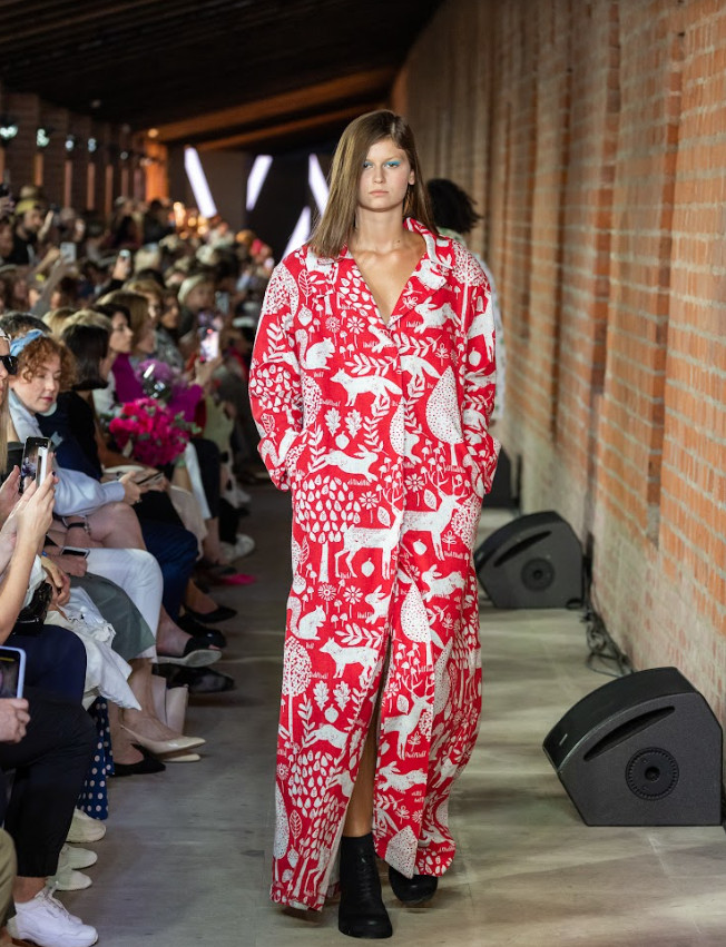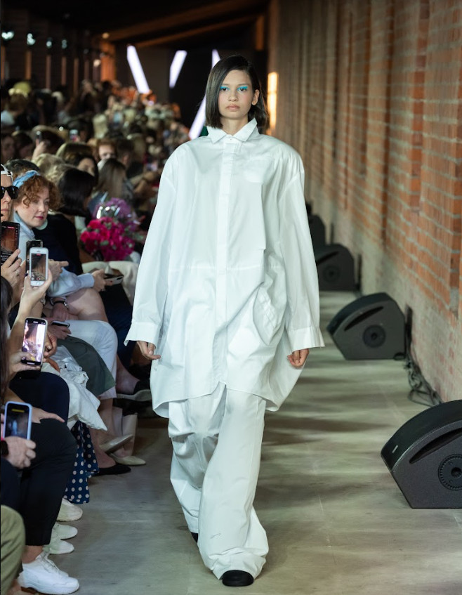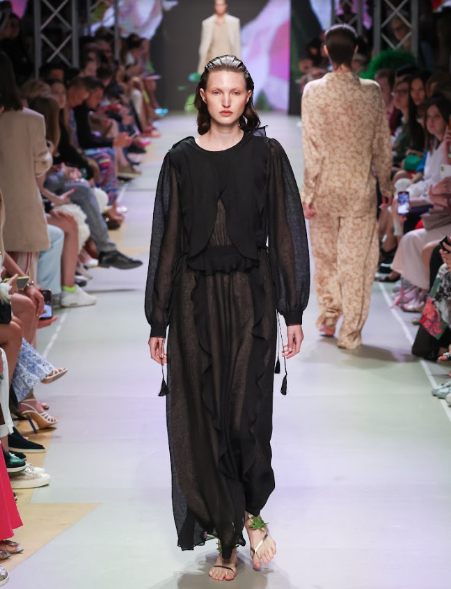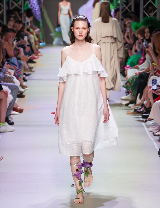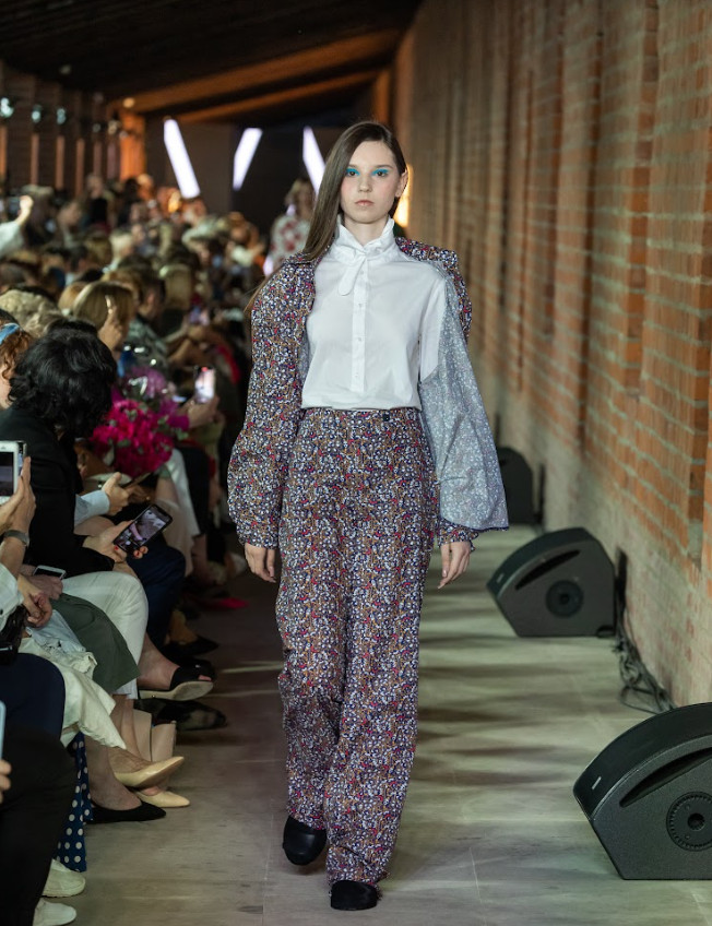 The new collection by Victoria Andreyanova was designed in collaboration with Shuysky Chintz, a major cotton producer with 200 years of history. Loose silhouettes, vivid prints, bright colors with touches of clear white – these were the keynotes of the new collection. Models walked down the catwalk demonstrating maxi dresses and oversize shirts, suits with belted jackets and widelegs, as well as short and long overcoats.