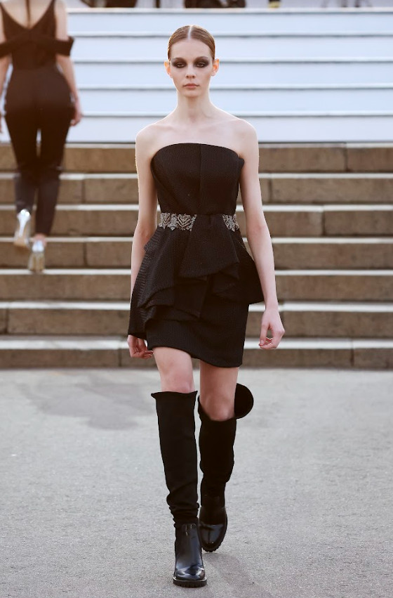 The basic concept of the new collection by TANYA KOTEGOVA was reconsideration of femininity and freedom This was seen in shapes and textures as well as the color – mainly black. Going beyond female beauty traditions and stereotypes, the designer took effort to comprehensively reconsider a jacket. Classic tail coats with avant-garde trimmings and romantic elements went perfectly natural with sportswear – this was a blend of things incongruous and a mix of things opposite. Extensive silhouettes, lots of layers, total black look, cold greys and warm caramels were accompanied by cool dark chocolate highlights and vivid prints. Loose dresses with assymetrical details featured volants, sophisticated sleeves, or different length rims. The collection is easy to rank among new aesthetic smart fashion free of narrow mindness.