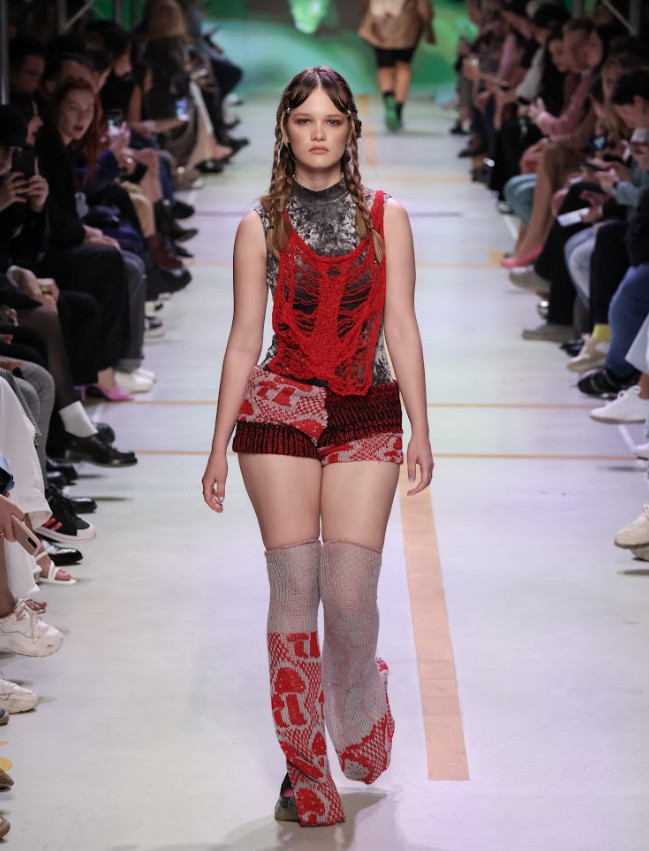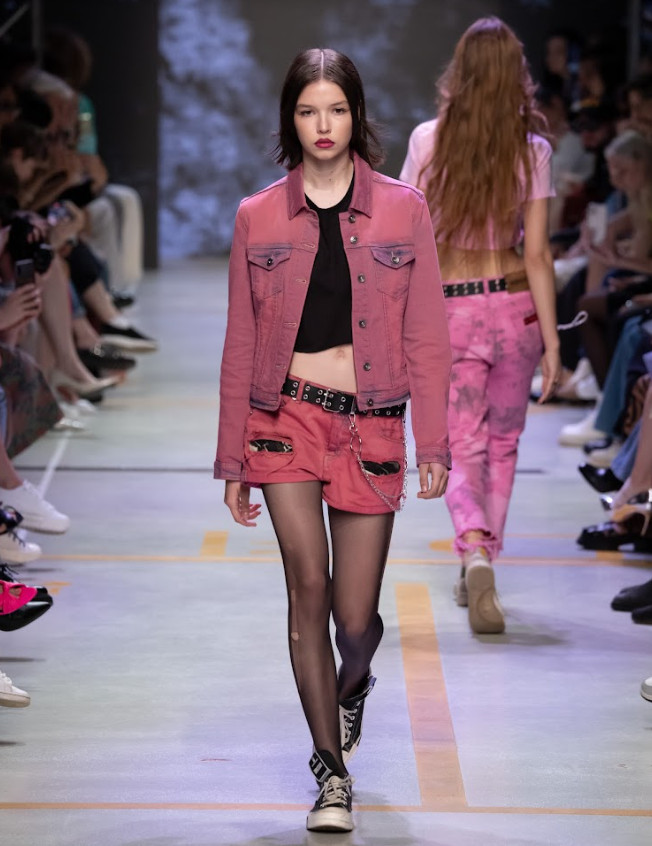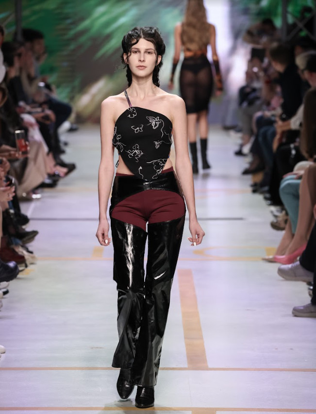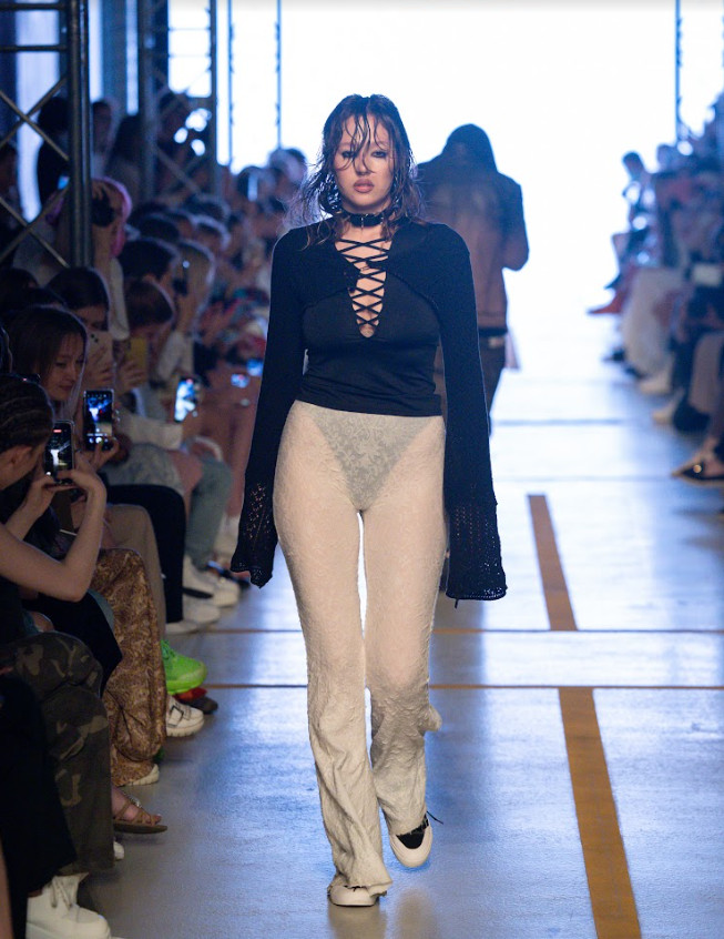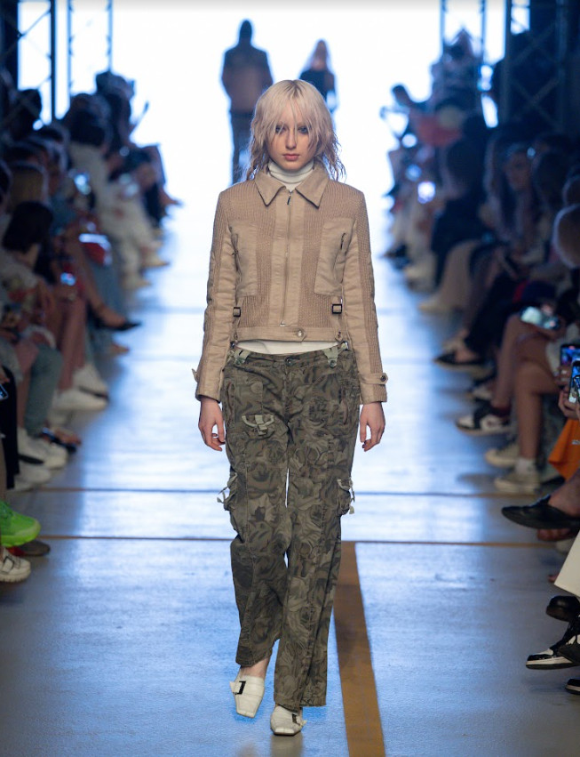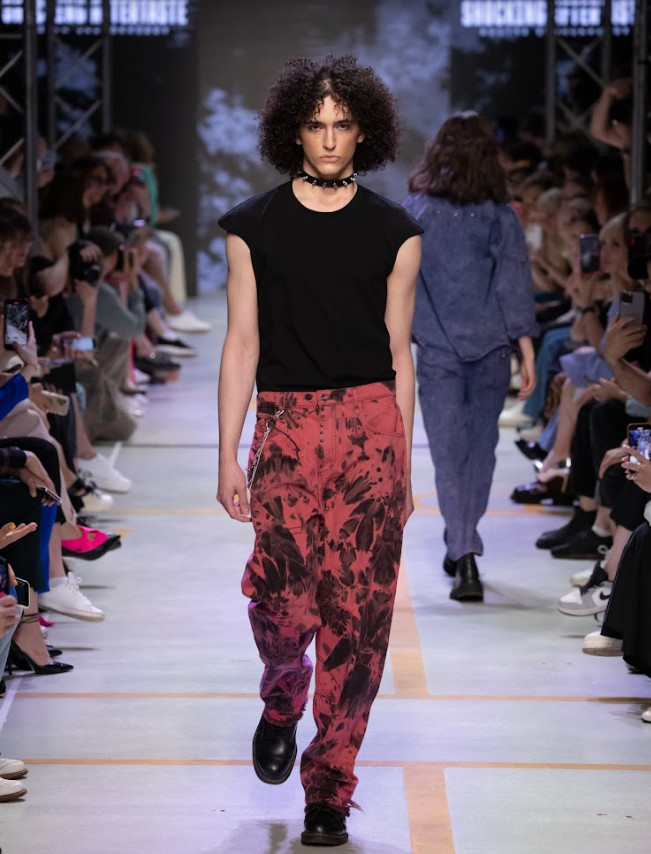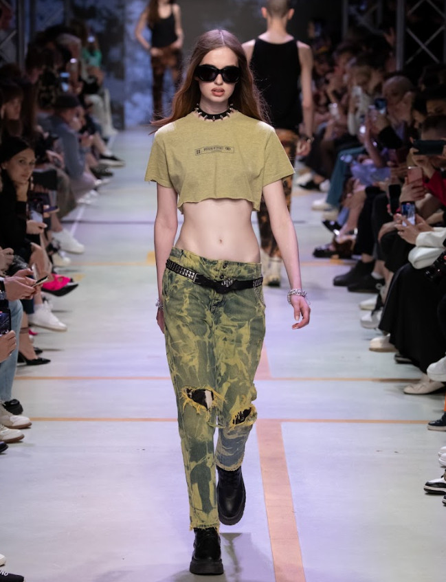 For 4 years in a row, Moscow-based designer Kostya Skorokhodov has been experimenting with customization. This was what led him to establishing his SHOCKING AFTERTASTE brand in 2020. Many show business people appreciated his bold solutions, including Egor Kreed, AllJ, Nyusha, Dima Bilan, Smokey Mo, Kizary, Mary Gu, Gosha Kartsev, Dina Sayeva, Maryana Ro, and many more. This season, Kostya presented his Reworked collection of 50 handmade men’s and women’s pieces. The collection seems to refer to cowboys and grunge punk music of the noughties. The range of colors covered many blends – from soft blue to classic punk-style pink and black. Every piece was unique thanks to upcycling, unusual tie-dye use, handmade stonewashing and etching. The trendy looks featured cargo pants, low waist jeans, crop tops, and oversize jackets.