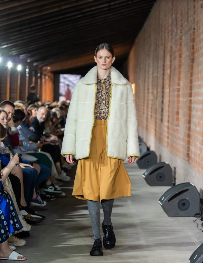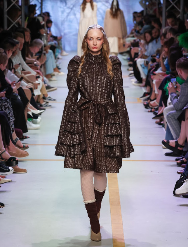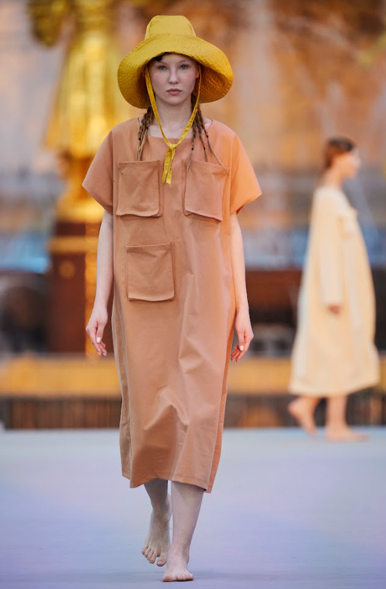 One of the top objectives for the brand is to raise awareness about reasonable consumption and slow fashion guidelines. The brand doesn’t make new collections as some system – they just add some models to their existing range. Their garments are a blend of references to all sides of the world, as well as Renaissance and the 70s. This is how designer Xenia Kudryashova feels – she believes creation can’t stay within boundaries of a single topic. Despite many kinds of textures, shapes, and colors, the show had a common denominator – comfortable feminine looks for a modern woman. Sweatshirts with highlighted bust line, one-suiters with contrasting waist, quilted dresses and corsets – all of them were loose and yet feminine.