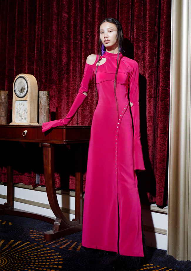 DIDU represents female futurism, a third space liberated from expectation and deeply connected to the power and beauty of the body. To the external world, clothing is our outermost layer, a skin atop our skin. This relationship between the garment and the body is central to Di Du’s philosophy of cutting away the unnecessary to bravely expose the body – powerful, sensual, authentic and unashamed. Slashed, flashed, frayed, and distorted, her work hangs between tension and release proposing a fluid and dynamic new elegance.