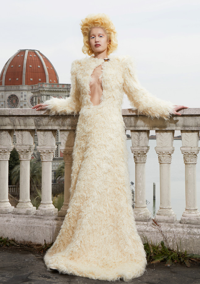 This season, dramatic and contrasting colour, texture and textiles cooperate and compete, embodying the pressure and relief of the protagonist’s journey inwards. Sensitive balancing of these aspects of design creates an innate energy and momentum within each piece, right at the threshold of tension and harmony. Fluid and dynamic, it is at once familiar to what has come before, but fresh and forward-looking; comforting but confronting; soft but strong; feminine but with force; confident, seductive, neoteric – sublime.