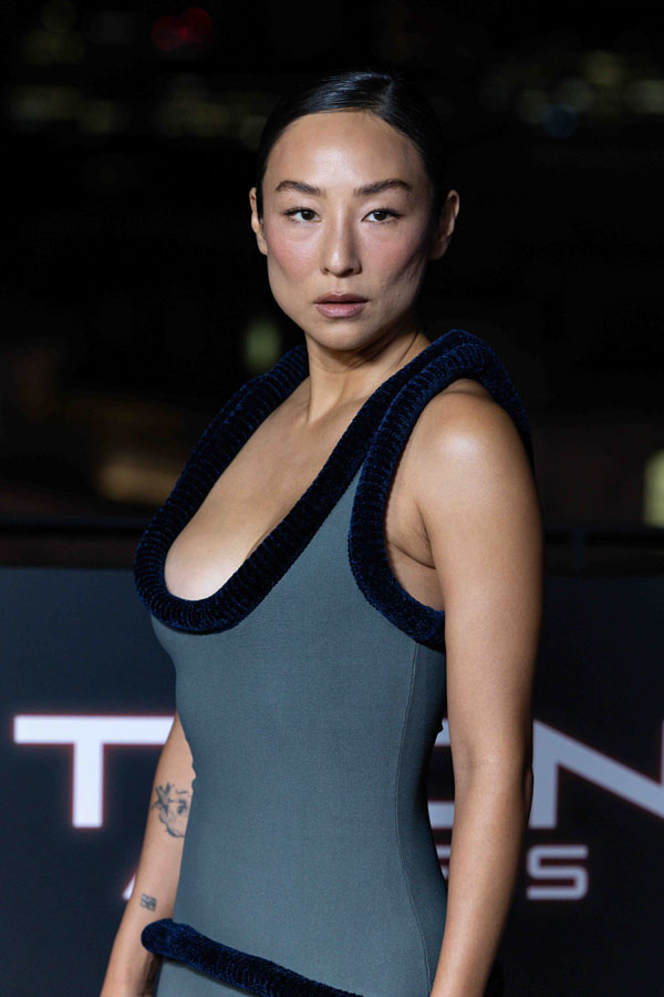 Greta Lee attends the UK Event of Disney’s ‘Tron: Ares’ at Piccadilly Lights, London on October 1st, 2025. (Photo by StillMoving.Net for The Walt Disney Company Limited)