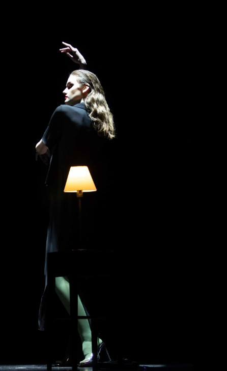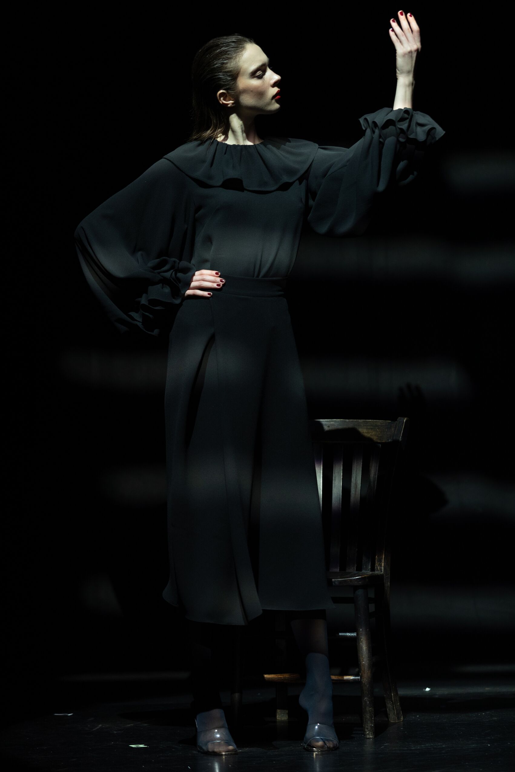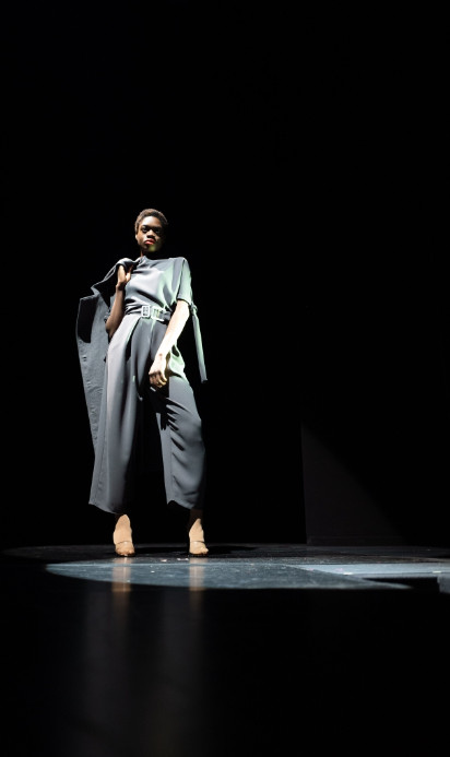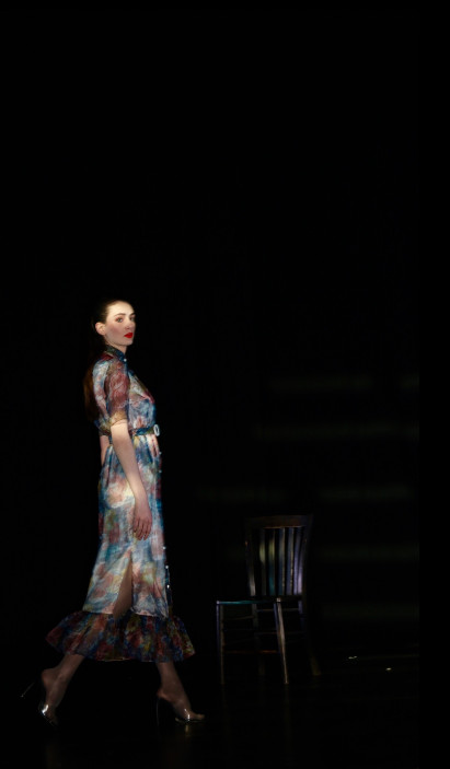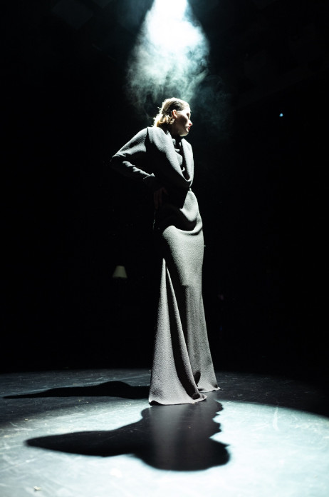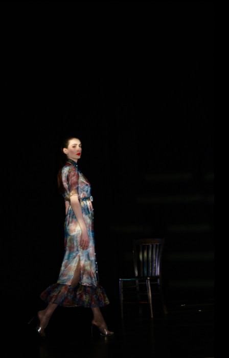 Models appear across the stage in a series of choreographed vignettes as narrators THEO JAMES and REBECCA TREHEARN pastiche literary descriptions of women, slowly transitioning into feminist statements. Visually, this presentation is a homage to the classic film noir genre and the femme fatale’s power, sensuality, intelligence and refusal to play by society’s norms. The audience is invited to consider female power, the potency of sensuality and the historical impact of the male gaze.