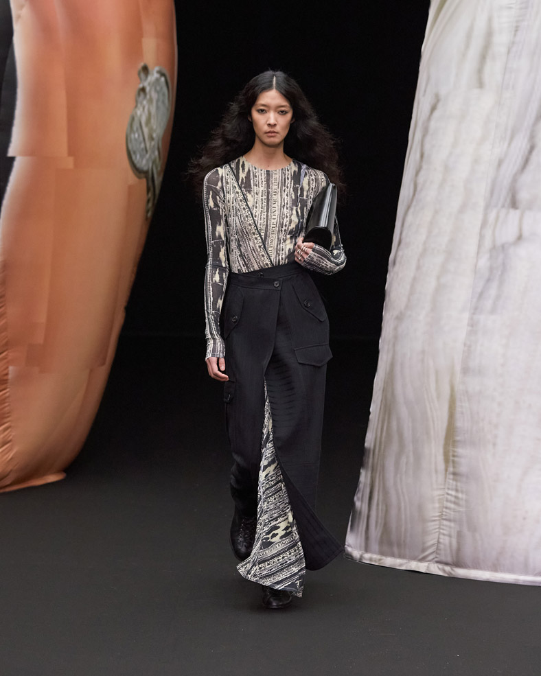 A huge sculpture from the Korean artist Osang Kwon, internationally known for his provocative 3D sculptures made with 2D images will be present on the runway to share EENK’s twisted, dark and unmistakably modern vision of X.