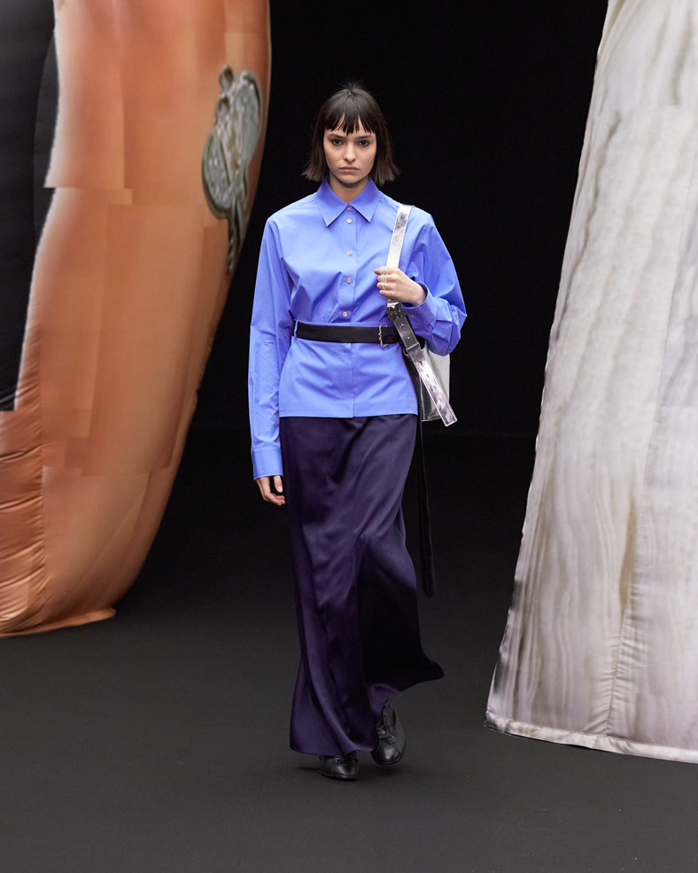 The rules of gender and time are ambiguous here, where basic items are deconstructed and reconstructed into a sophisticated mystery that keeps you guessing. How many layers? Is it a skirt or are they trousers? Classical check patterns are chopped up and interweaved with Art Deco prints, paintbrush strokes and written words of contemporary literature. Fittingly for its Letter Project roots, EENK adventures into uncharted territory for the letter X.