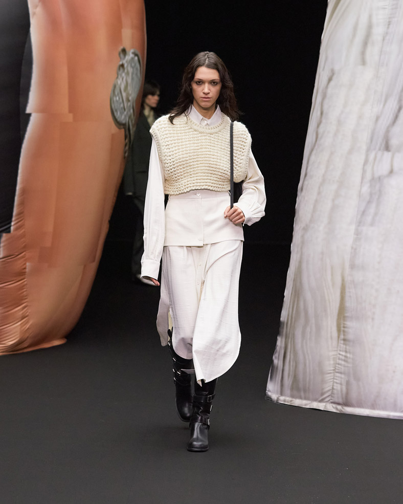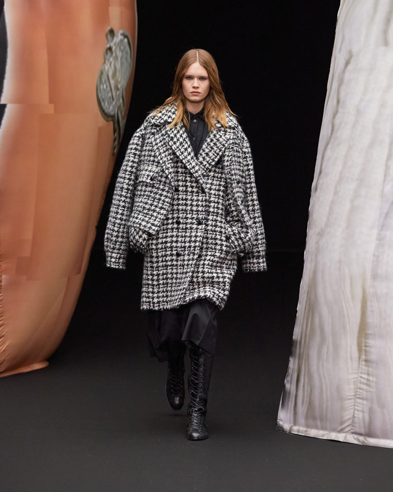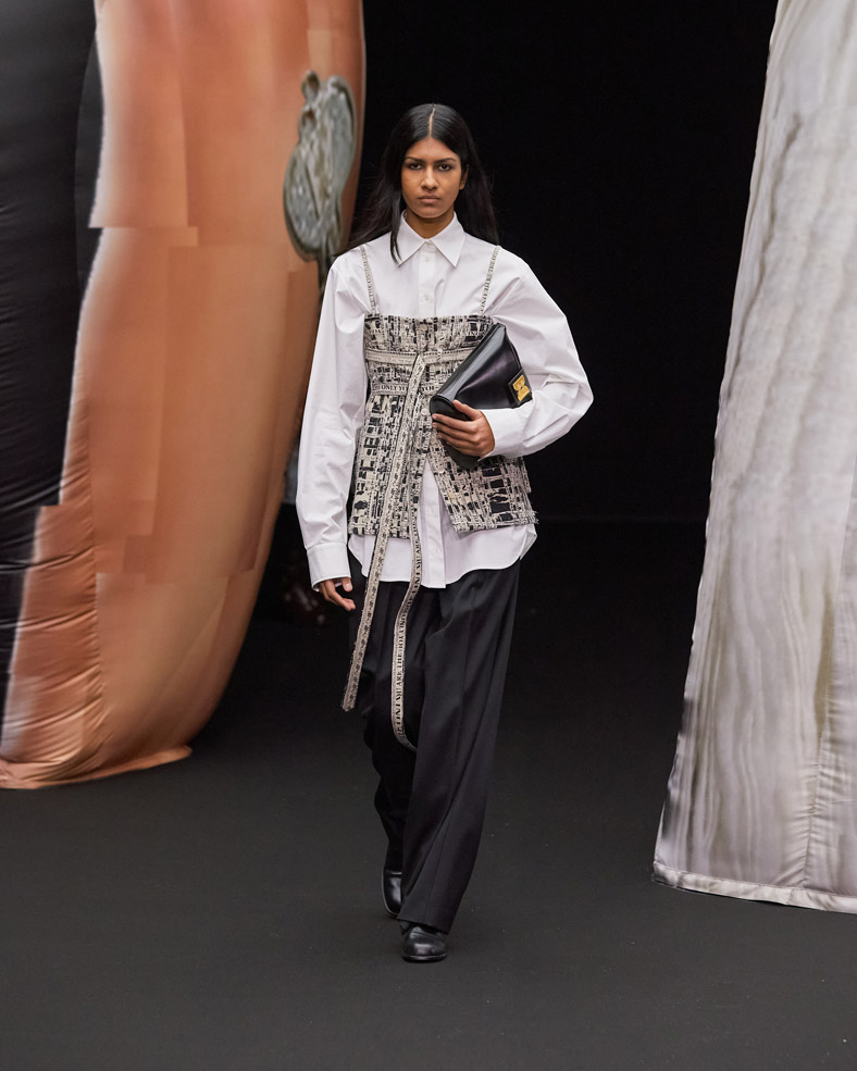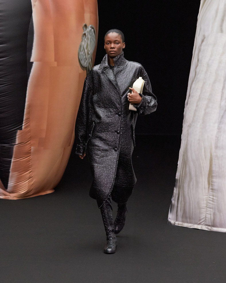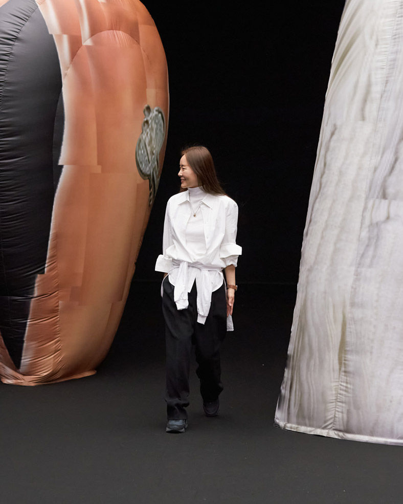 A huge sculpture from the Korean artist Osang Kwon, internationally known for his provocative 3D sculptures made with 2D images will be present on the runway to share EENK’s twisted, dark and unmistakably modern vision of X.