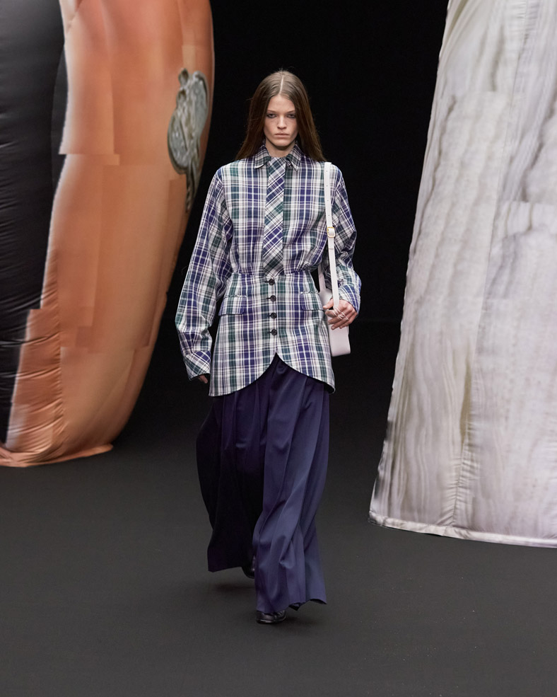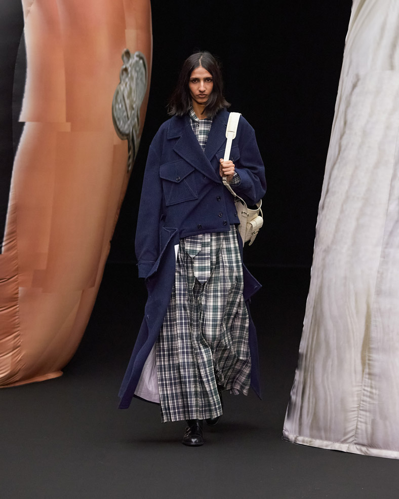 The rules of gender and time are ambiguous here, where basic items are deconstructed and reconstructed into a sophisticated mystery that keeps you guessing. How many layers? Is it a skirt or are they trousers? Classical check patterns are chopped up and interweaved with Art Deco prints, paintbrush strokes and written words of contemporary literature. Fittingly for its Letter Project roots, EENK adventures into uncharted territory for the letter X.