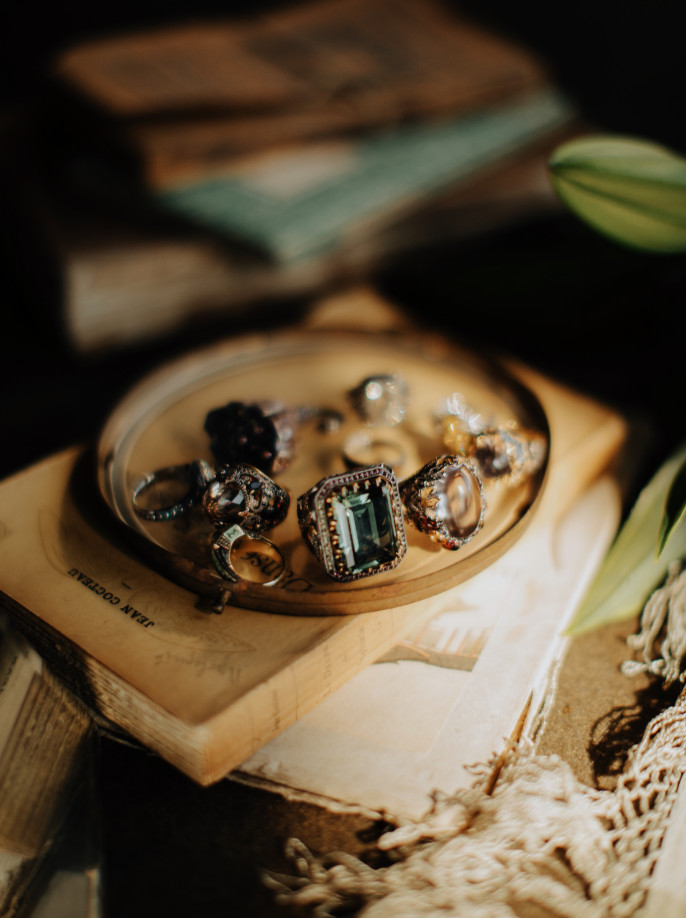 The renowned jewellery critic Melanie Grant sees in them a “whimsical gothic universe” and “baroqueness.” And there’s an allusion to the fact that Tim Burton’s “Dark Shadows” and “Dambo” characters wore these rings. But Okutova’s rings acquired a life of their own off-screen. Actress Eva Green, the first person to collect the brand’s rings, introduced them to the film’s costumery because she felt they not just fit her image but projected her spirit as well. She calls them ” weaponry” perfect for press time: “This way I feel like I can be myself. I feel protected, as if I was wearing a talisman.”