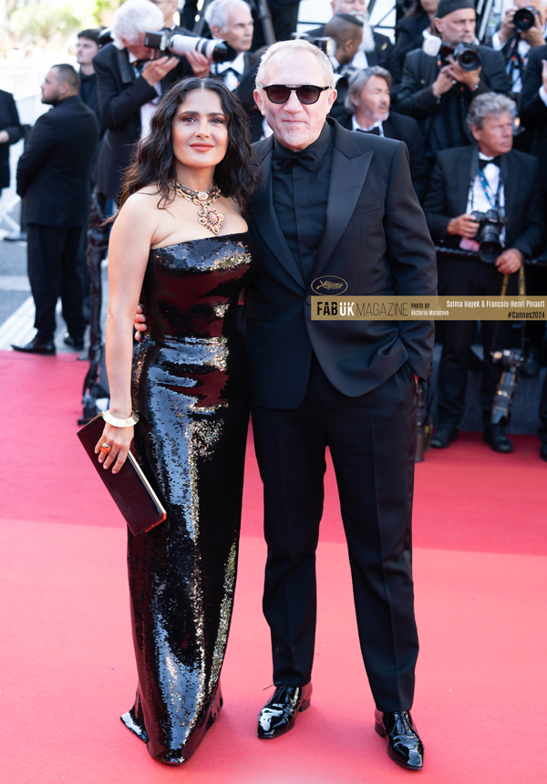 Salma Hayek & Francois-Henri Pinault attends “Emilia Perez” Red Carpet at the 77th Festival de Cannes Cannes Film Festival (Photos by Victoria Mazurova/FABUK)
