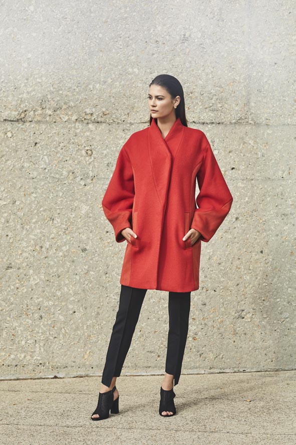 The brand’s signature staple – the Kimono style jacket continues on, this time reimagined for autumn/winter with exquisite embroidered embellishment to deliver a true ‘hero’ piece. The element of embroidery continues throughout, with Shisha mirror work taking the Eastern inspiration to a new level.