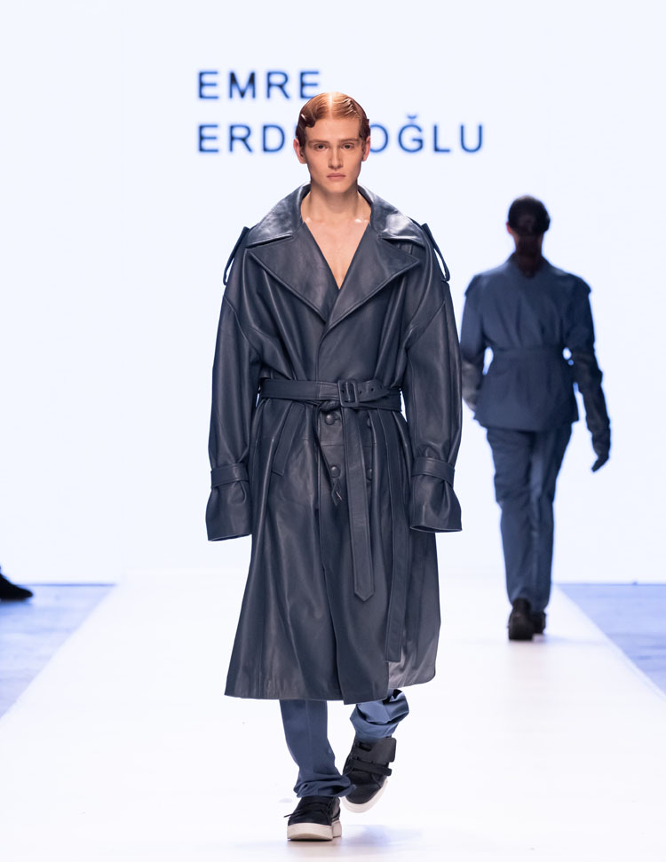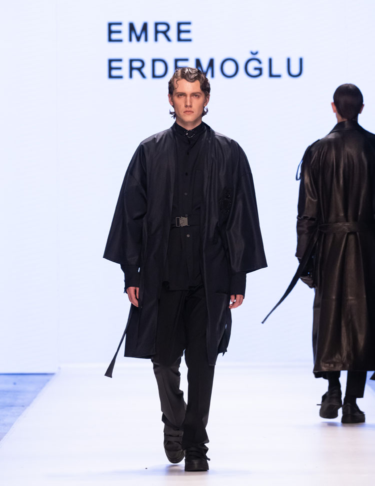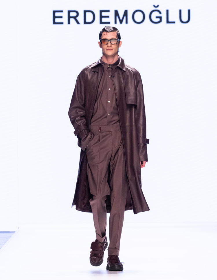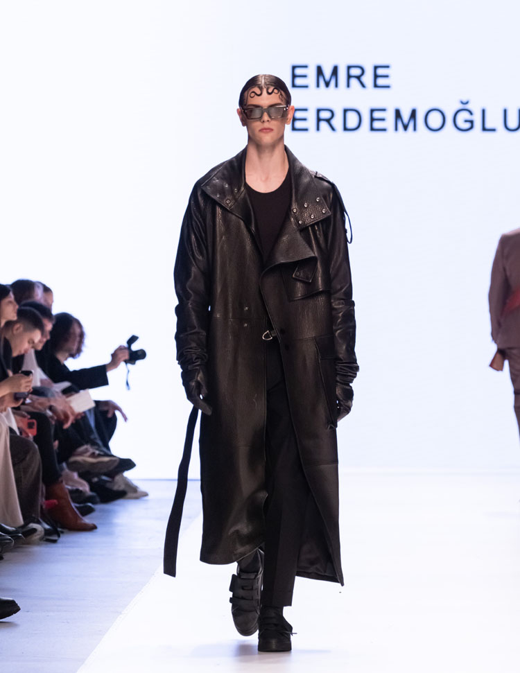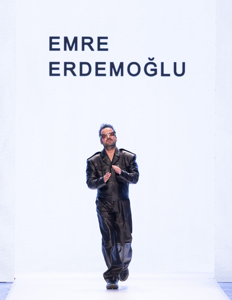 Emre Erdemoğlu incorporated the dramatic power of human relationships, the “Bond,” into his 2025 Fall/Winter Collection. As in every season, the designer worked military forms into the collection, redefining the concept of luxury with a strong narrative and rich color selection. Leather details dominated the collection, with cashmere coats, oversized jackets, and trench coats reaching the ground. The designer, who incorporates different characters into his collections every season, presents a different interpretation of the unconditional bond between two individuals to fashion enthusiasts this season.