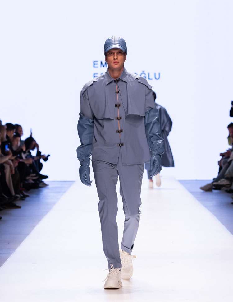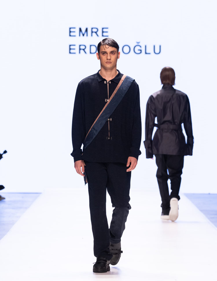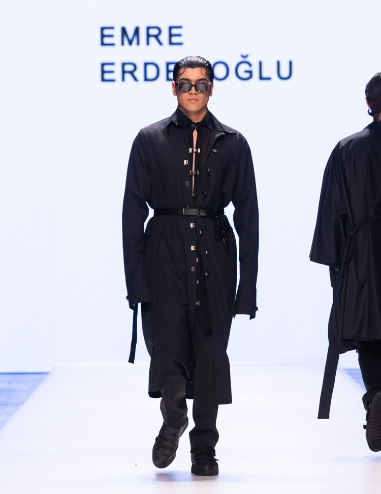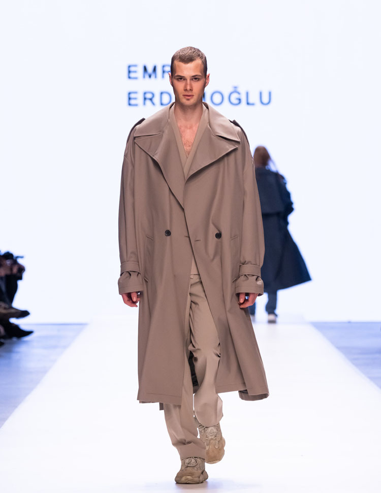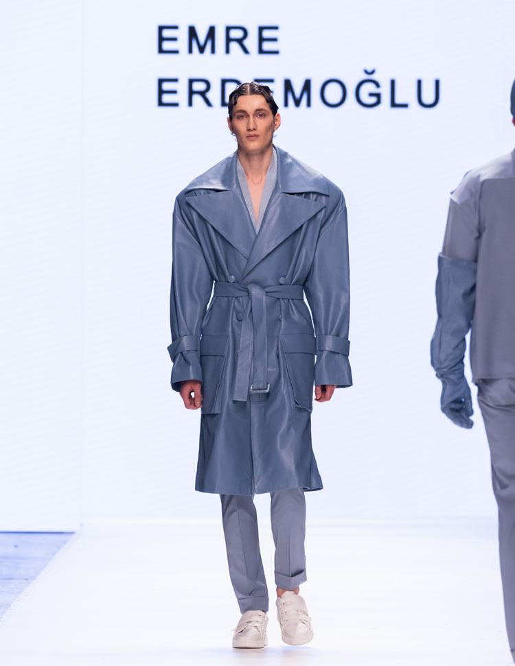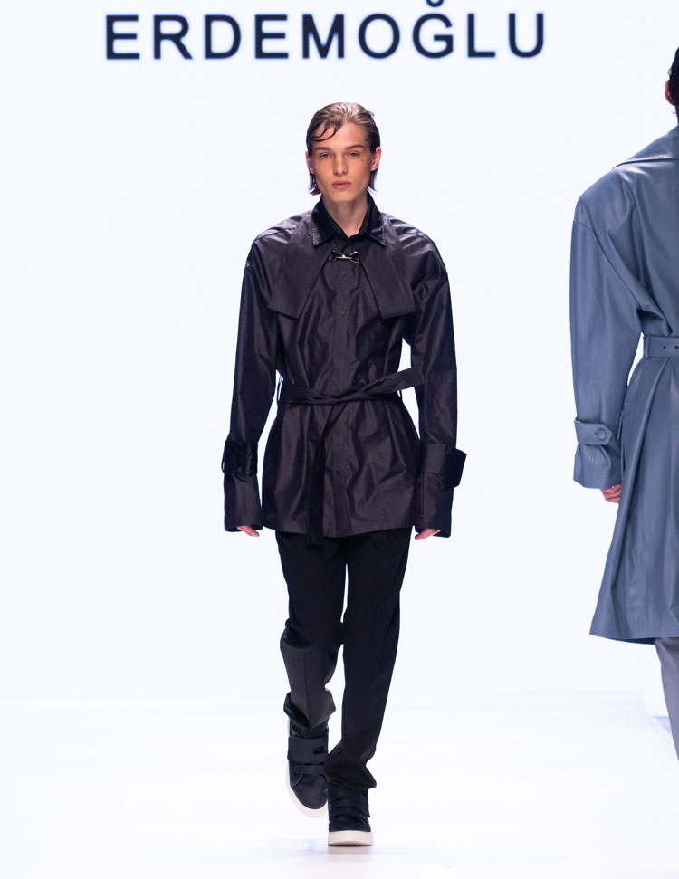 Emre Erdemoğlu incorporated the dramatic power of human relationships, the “Bond,” into his 2025 Fall/Winter Collection. As in every season, the designer worked military forms into the collection, redefining the concept of luxury with a strong narrative and rich color selection. Leather details dominated the collection, with cashmere coats, oversized jackets, and trench coats reaching the ground. The designer, who incorporates different characters into his collections every season, presents a different interpretation of the unconditional bond between two individuals to fashion enthusiasts this season.