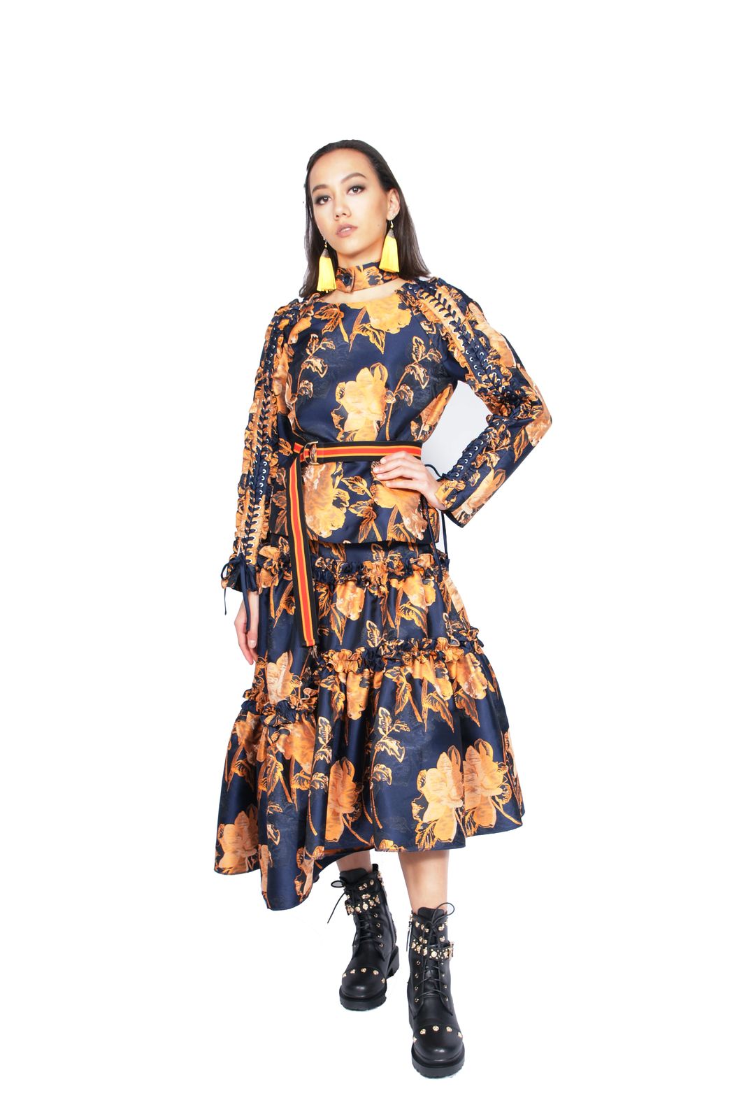 SYRA J.’s AW20 collection features feminine silhouettes, cinched waists, bold shoulders and military accents as well as gold hues perfect for the AW20 season. Each of the fabrics tells a story and represents the emotion that together makes up the entire tapestry of the collection. Fabrics include SYRA J. signatures including lace, velvet, organza and chiffon.