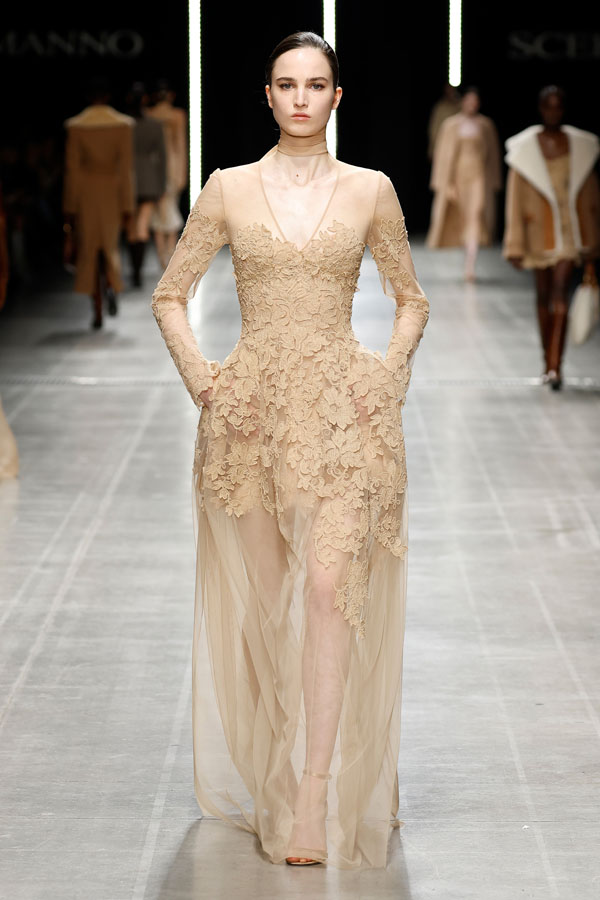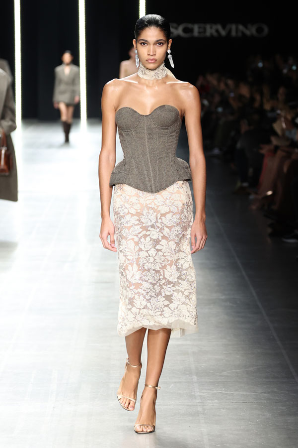 This season, Ermanno Scervino delivered a masterclass in modern femininity, blending tension and harmony to redefine contemporary fashion. The collection, a stunning synthesis of tradition and innovation, reaffirmed the Maison’s unwavering commitment to craftsmanship and artistic storytelling.