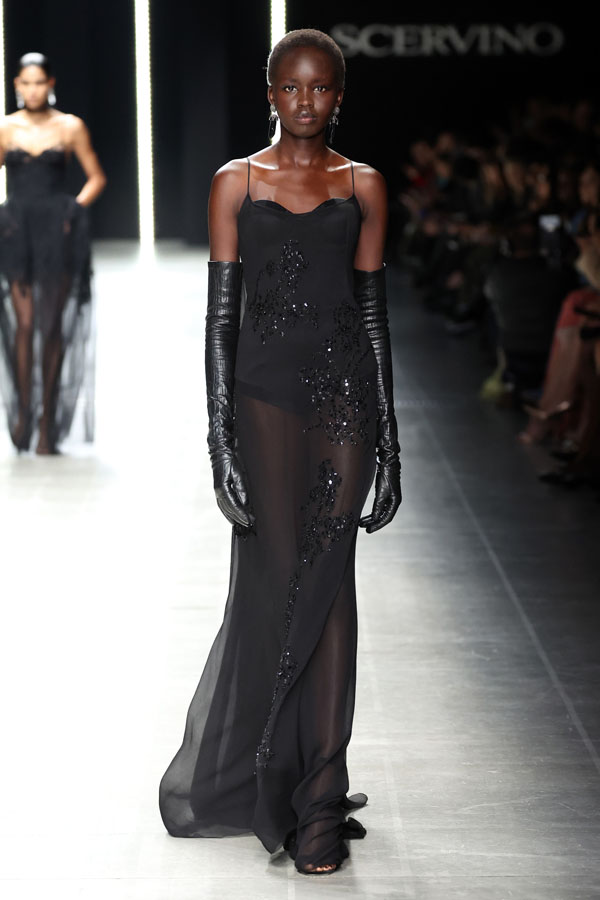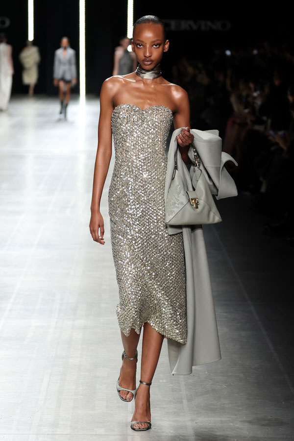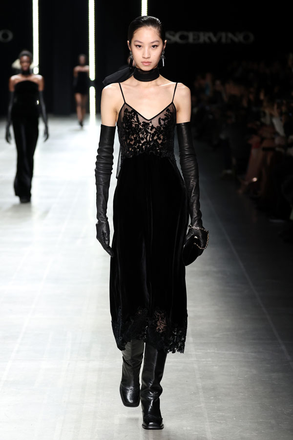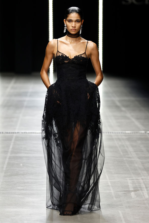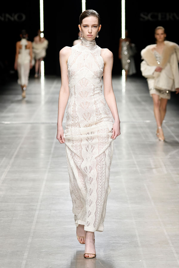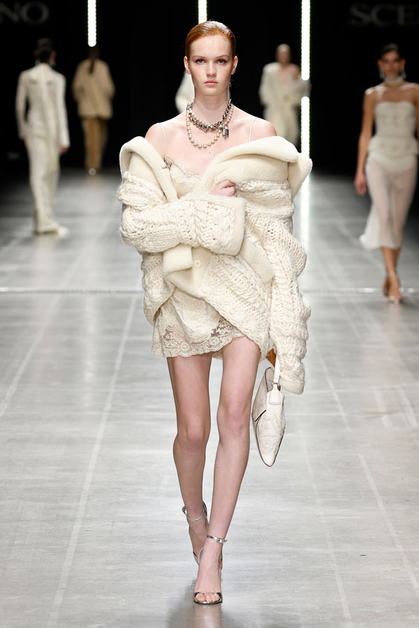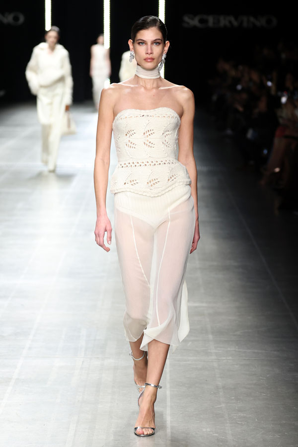 This season, Ermanno Scervino delivered a masterclass in modern femininity, blending tension and harmony to redefine contemporary fashion. The collection, a stunning synthesis of tradition and innovation, reaffirmed the Maison’s unwavering commitment to craftsmanship and artistic storytelling.