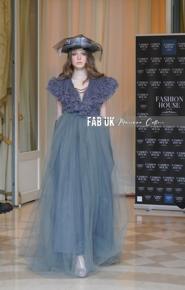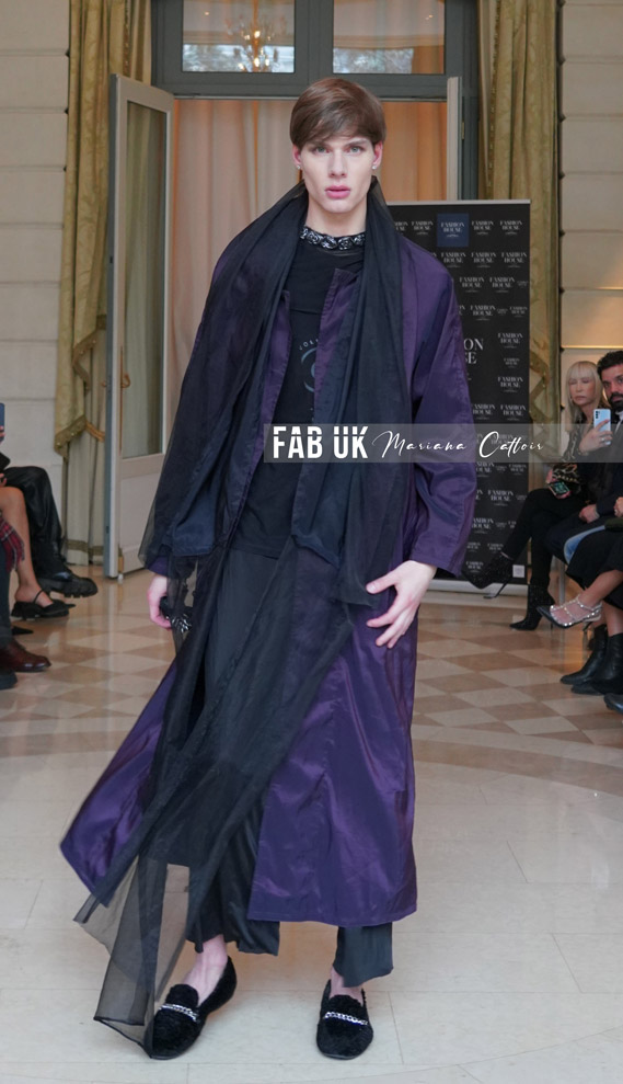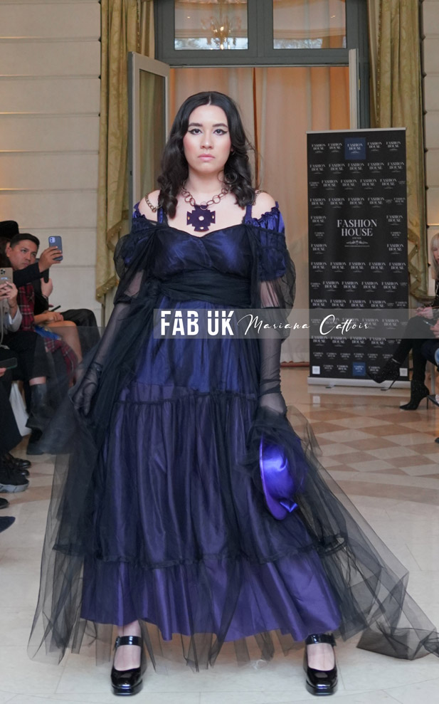 Runway Fashion Show AW23 “Baroque Ball” Capsule Collection – The general style of Epoka Revolution is: Parisian gothique luxury style with medieval touches and ballet textiles cuts and mouvements, volume made with haute couture techniques/broderie and also using some recycled textiles with the mission of zero waste, using ecologically sustainable materials.