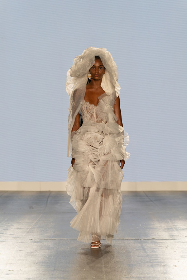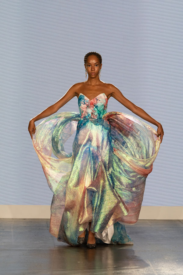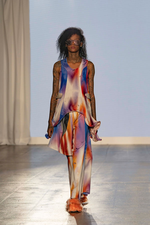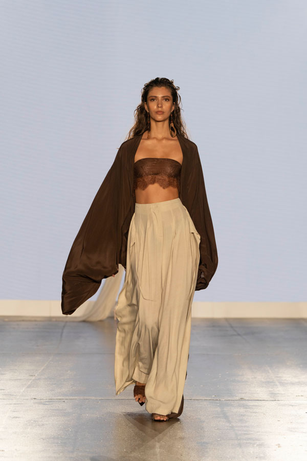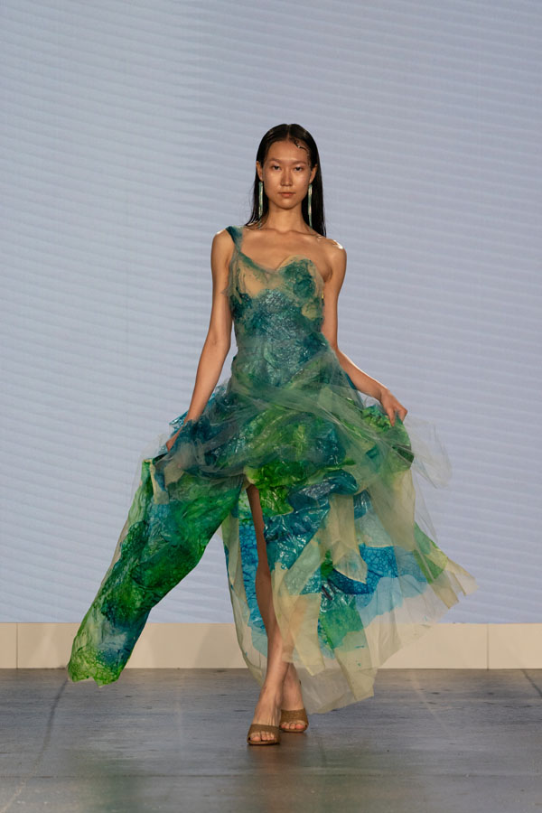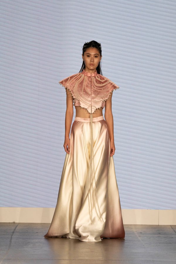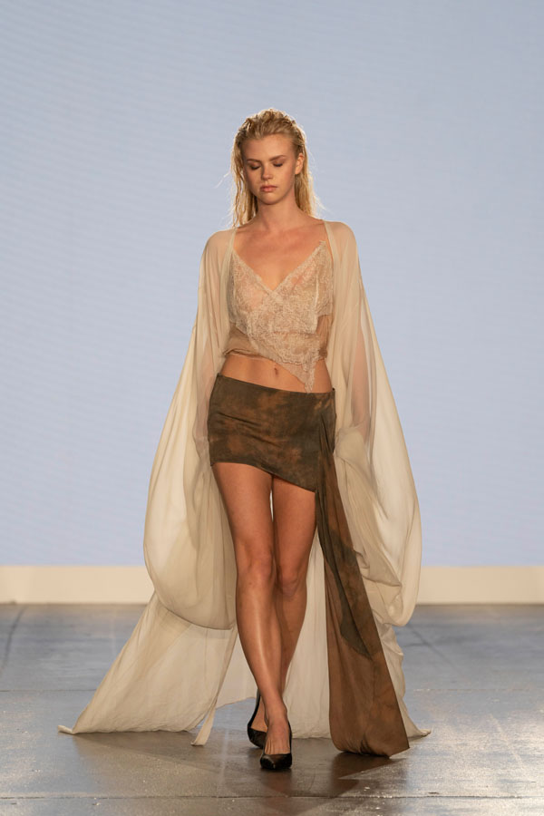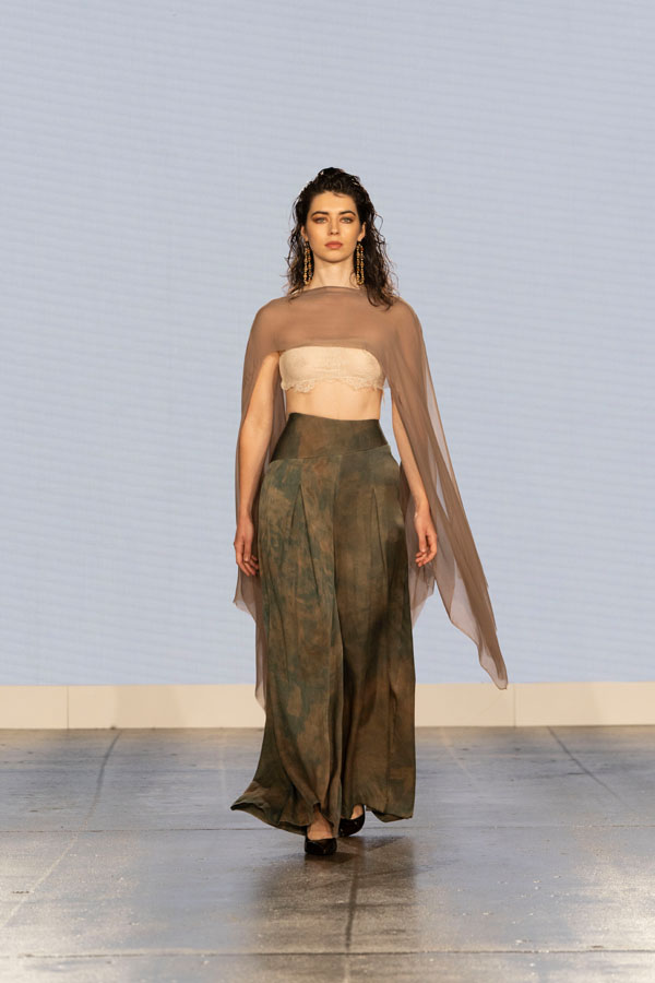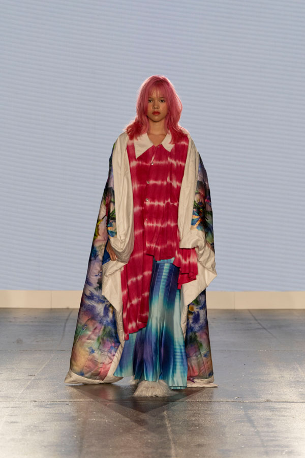 witHemera wardrobe’s collection showcases wearable garments and soft sculptures, interacting with one another, captivating audiences with a sensory experience. Inspired by the performance art sirenomelia found on Sicily’s rocky coast, Hemera was touched by the art’s swing between human and non-human beings. The designer sees sirenomelia as a metaphor for the human subconscious – swinging between what we are defined as by society and what we are defined as by ourselves.