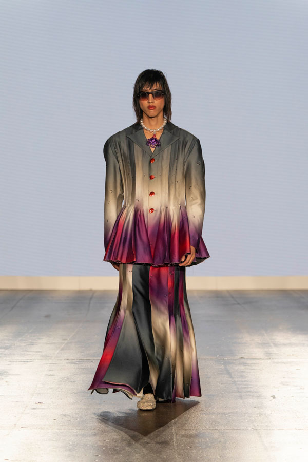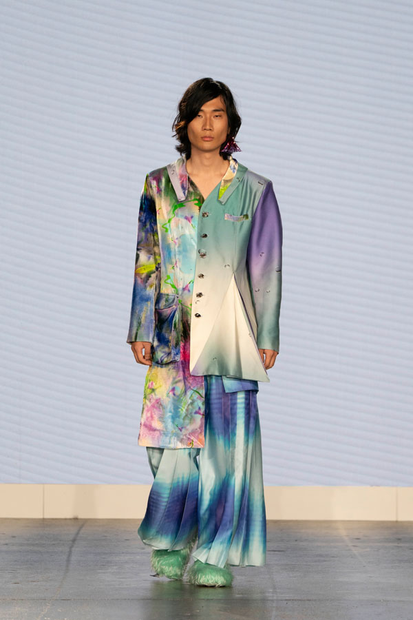 Fresh from London College of Fashion’s (LCF) Menswear division, VITAL AO introduces their latest collection titled HAZARD as a subjective experience for audiences. Conceived as deeply personal artwork, HAZARD translates VITAL AO’s confrontation with the meaning of ‘Void’, simultaneously representing the designer’s protective armour.