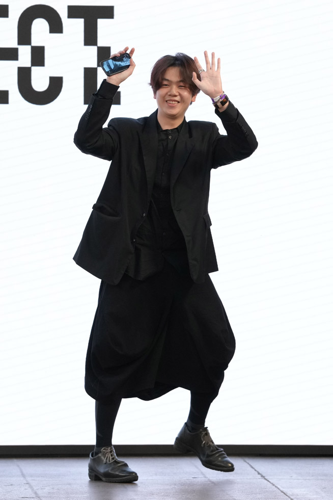 She is an expert in 3D printing and laser cutting and aims to create new designs to make hard materials into wearable garments. Most of her designs have complex structures and show her deep thought for society phenomena.