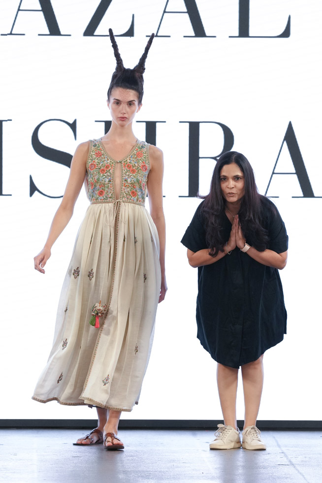 Gazal Mishra, an engineering graduate who boldly embarked on her fashion journey in 2015, established her eponymous brand as a celebration of the synergy between passion and purpose. Committed to empowering local artisans and craftsmen, her brand evolved into a haven of creativity and cultural heritage. With a steadfast dedication to sustainable fashion, Gazal Mishra seamlessly weaves intricate artistry with environmental consciousness, harmonizing elegance with ethical values and redefining fashion innovation, one organic stitch at a time.