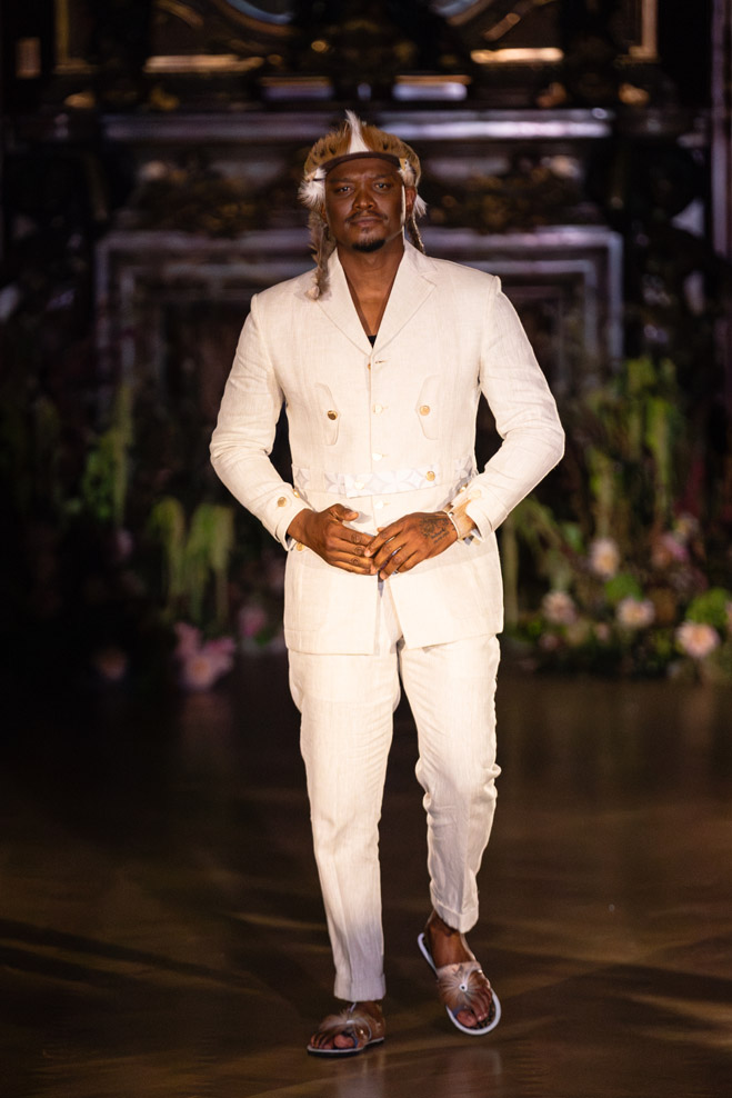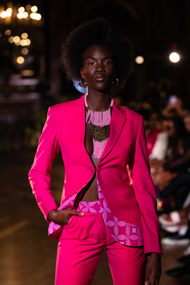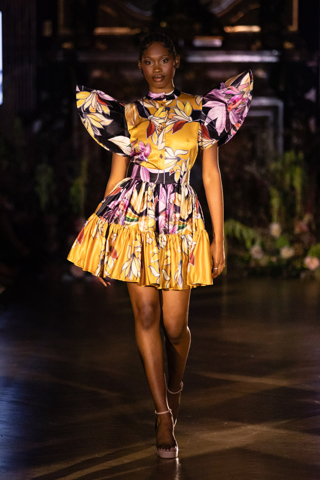 By Vel’s Ukrainian collection embodied experimentation and fearlessness, appealing to individuals unafraid to stand out. The beautiful floral designs, flowing ruffled layers, and captivating headpieces showcased a harmonious blend of tradition and innovation. Belle Togs, established in 2021 by Keke Moeca, showcased South African elegance and classic style at Paris Fashion Week. Their collection, rooted in the essence of the wild, featured stunning animal and floral prints in vibrant hues of purple, yellow, and green. The designs seamlessly merged the untamed beauty of the natural world with the sophistication of high fashion.