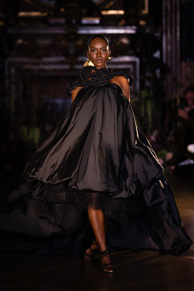By Vel’s Ukrainian collection embodied experimentation and fearlessness, appealing to individuals unafraid to stand out. The beautiful floral designs, flowing ruffled layers, and captivating headpieces showcased a harmonious blend of tradition and innovation. Belle Togs, established in 2021 by Keke Moeca, showcased South African elegance and classic style at Paris Fashion Week. Their collection, rooted in the essence of the wild, featured stunning animal and floral prints in vibrant hues of purple, yellow, and green. The designs seamlessly merged the untamed beauty of the natural world with the sophistication of high fashion.