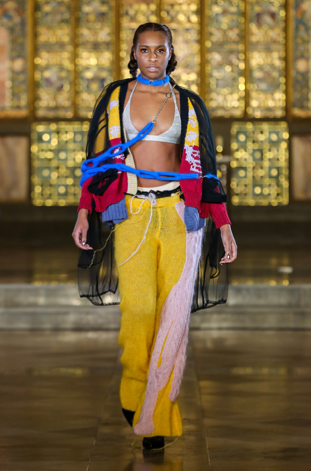 Milena Sayad is a sustainable designer whose collection is about women’s empowerment and sexuality. Here modern architectural patterns were combined with feminine silhouettes from 1950, the dresses embrace women’s inner confidence. Each piece is made with 100% merino wool on a manual knitting machine and sewn by hand by Milena. The designer’s commitment to sustainability means she produces high-quality limited editions of no more than 10 pieces.