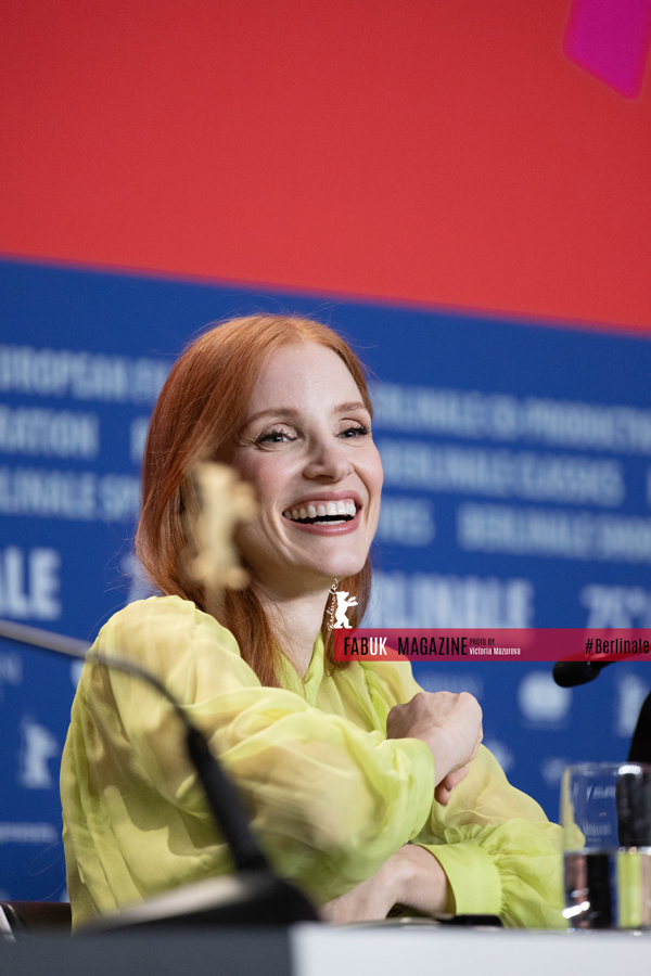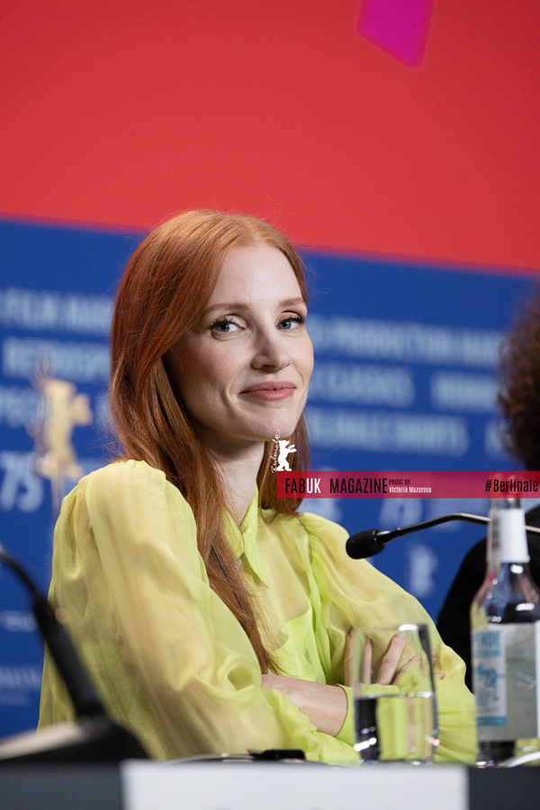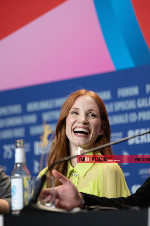 Jessica Chastain address a press conference for the film ‘Dreams’ at the 75th Berlinale, in Berlin on February 15, 2025. (Photo by Victoria Mazurova/FABUK)
