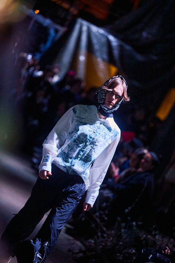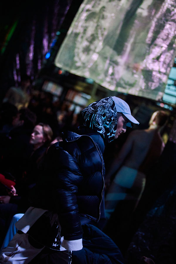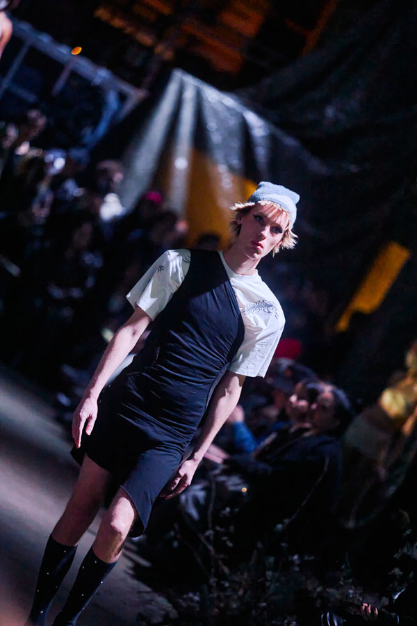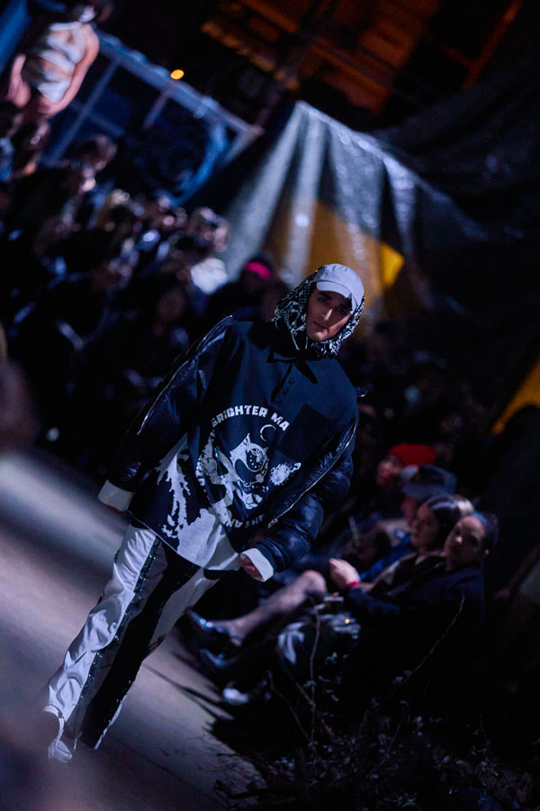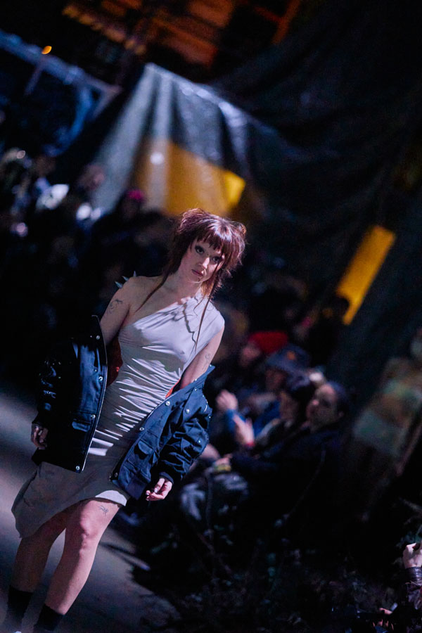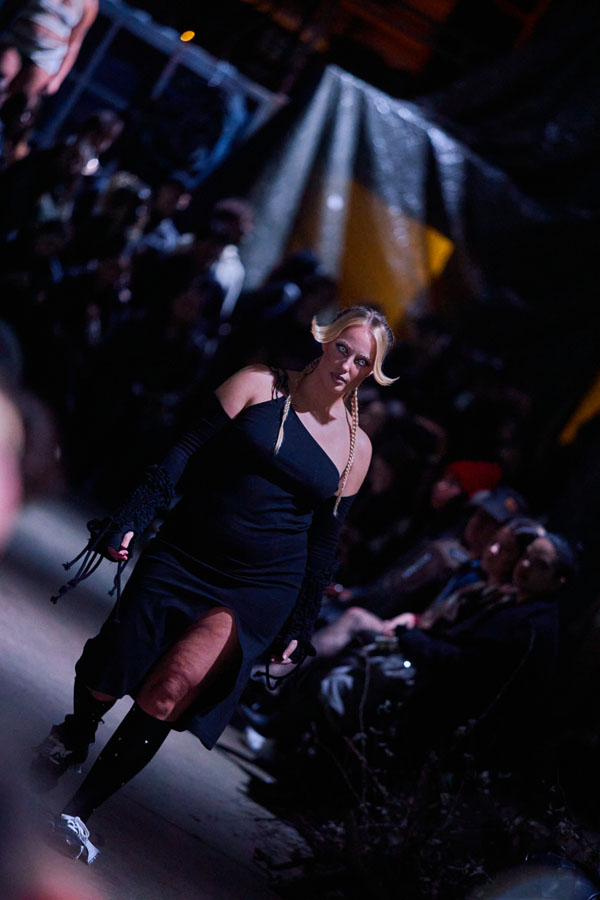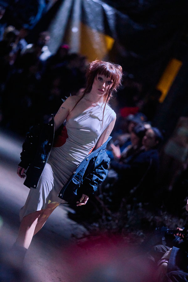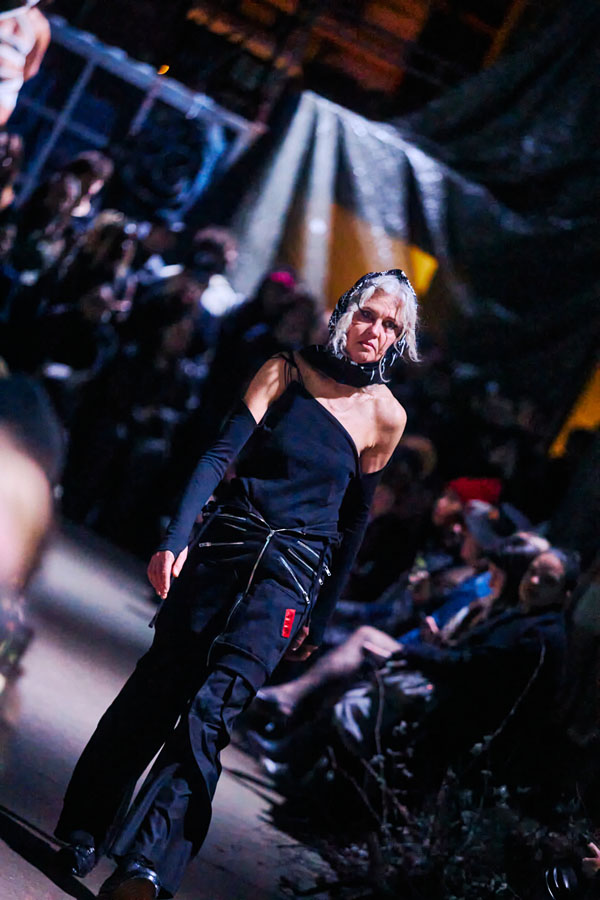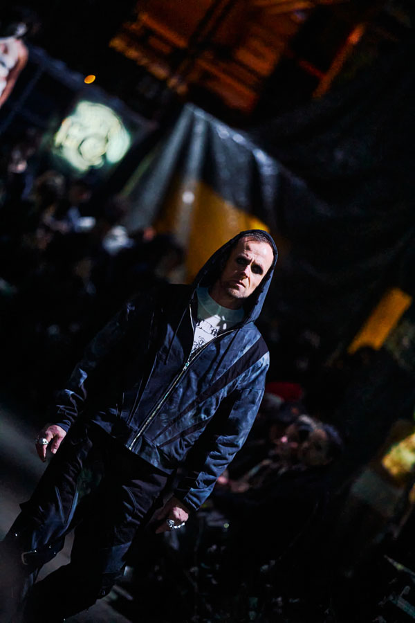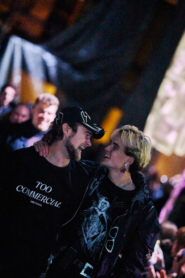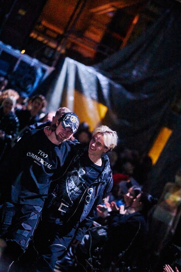 The runway show for ATARAXIS, their biggest one yet, took place in Copenhagen during fashion week. It was designed as an immersive arena centered around Danish music group Kind mod Kind, as well as 20 actors scarcely clad in bandages portraying outcasts of society—a common theme in FINE CHAOS storytelling.