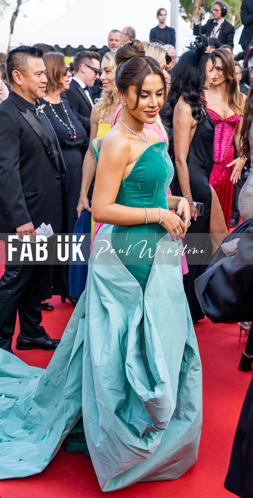 Gabrielle Tana, Alicia Vikander, director Karim Aïnouz, Jude Law, Junia Rees, Amr Waked, and celebrities attend the “Firebrand (Le Jeu De La Reine)” red carpet during the 76th annual Cannes film festival at Palais des Festivals on May 21, 2023, in Cannes, France. (Photos by Paul Winstone/Fabuk)