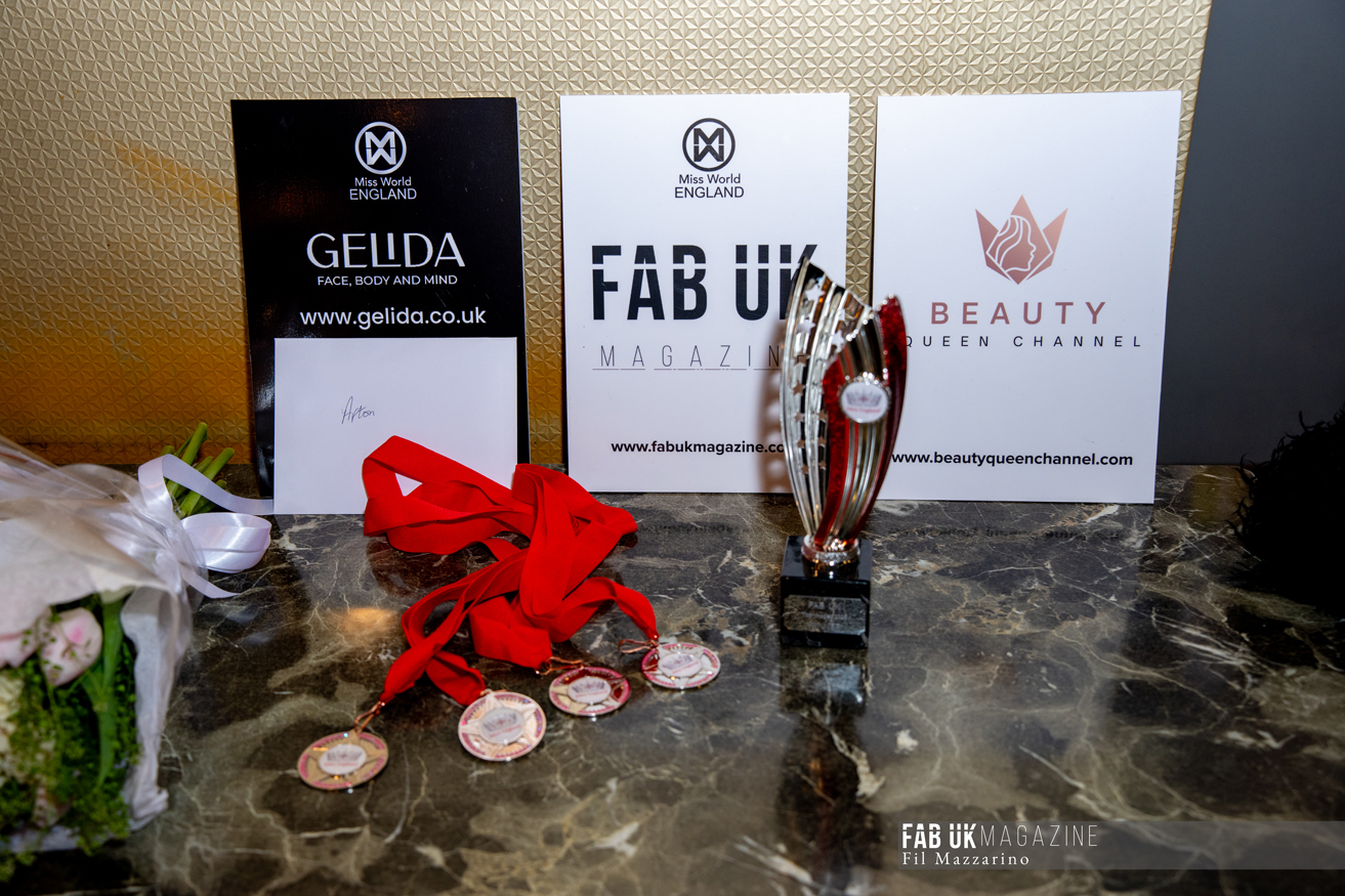 Both ladies received cosmetics from “Sophie London” , and beautiful flowers from @artflowerdesignuk along with Medals . As Annabel won a title , she was presented with a Trophy from Miss England