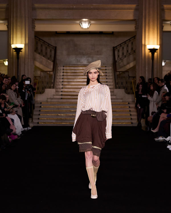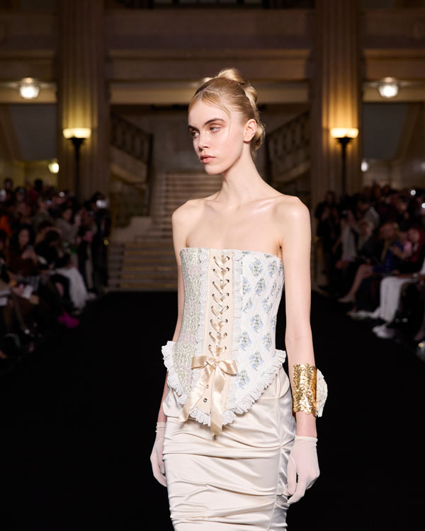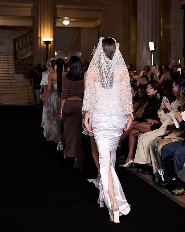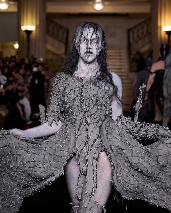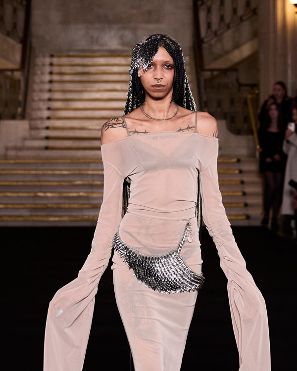 For the latest collection, PATIENT Z collaborates with the jewellery designer AESTHETIC BULLET to create Death of the Romantic – a deeply personal collection that explores the delicate tension between innocence and transformation – all through a lens that merges fashion, jewellery design and storytelling. Each look is crafted as an embodiment of a distinct character from a transformative journey, set within a world inspired by Slavic folklore. The collection follows ‘The Romantic’—a gentle, naive figure navigating an unfamiliar and often harsh landscape. As she encounters trials and challenges, her soft nature is tested, leading to an inevitable metamorphosis. This evolution is reflected in the designs, blending ethereal, delicate fabrics with structured silhouettes and handcrafted jewellery, bringing each character’s story to life. The pieces evoke a sense of nostalgia, weaving childhood memories into a timeless narrative of growth, resilience, and rebirth. Death of the Romantic captures the heartbreak of losing naive ideals while celebrating the strength and beauty that emerge from metamorphosis.