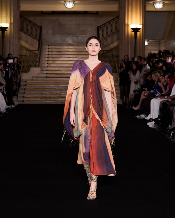 The latest collection, titled Origin and Awe, draws inspiration from the film Annihilation. The movie explores themes of destruction and rebirth, suggesting that from destruction comes creation. For Taro, annihilation symbolises not silence but the glorious rebirth and the immortality of matter, reflected in her designs through vibrant colours and a sense of fantasy.
