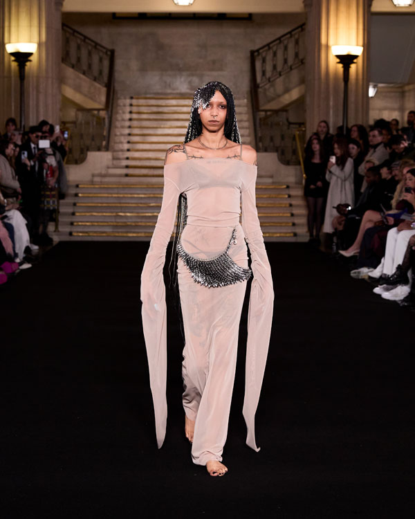 For the latest collection, PATIENT Z collaborates with the jewellery designer AESTHETIC BULLET to create Death of the Romantic – a deeply personal collection that explores the delicate tension between innocence and transformation – all through a lens that merges fashion, jewellery design and storytelling. Each look is crafted as an embodiment of a distinct character from a transformative journey, set within a world inspired by Slavic folklore. The collection follows ‘The Romantic’—a gentle, naive figure navigating an unfamiliar and often harsh landscape. As she encounters trials and challenges, her soft nature is tested, leading to an inevitable metamorphosis. This evolution is reflected in the designs, blending ethereal, delicate fabrics with structured silhouettes and handcrafted jewellery, bringing each character’s story to life. The pieces evoke a sense of nostalgia, weaving childhood memories into a timeless narrative of growth, resilience, and rebirth. Death of the Romantic captures the heartbreak of losing naive ideals while celebrating the strength and beauty that emerge from metamorphosis.
