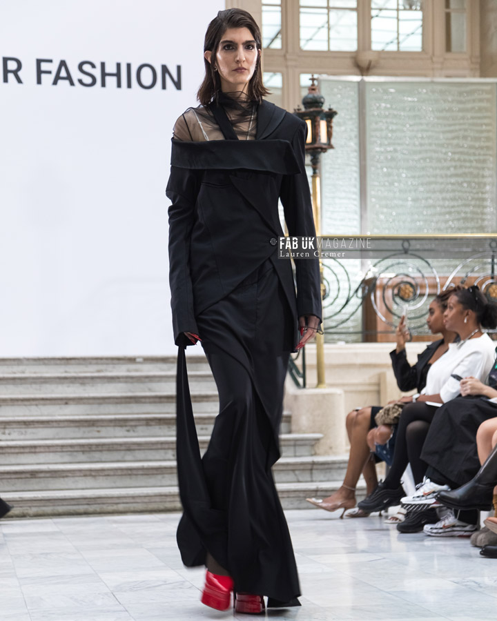 The “Flowery He” brand presented its striking collection, I AM A CONTAINER III, during London Fashion Week, showcasing an avant-garde fusion of bold aesthetics and conceptual fashion design.