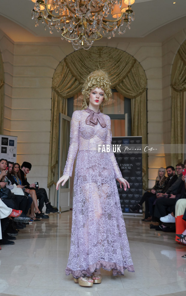 She focus her designs on the emotions, some of her last pieces have historical patrons, and cuts, capes, royalty skirts and dresses and Wings with the Marie-Antoinette Queen of France Looks – the collection is colored with flowers melancholic and fantastic, with a touch of royal period.