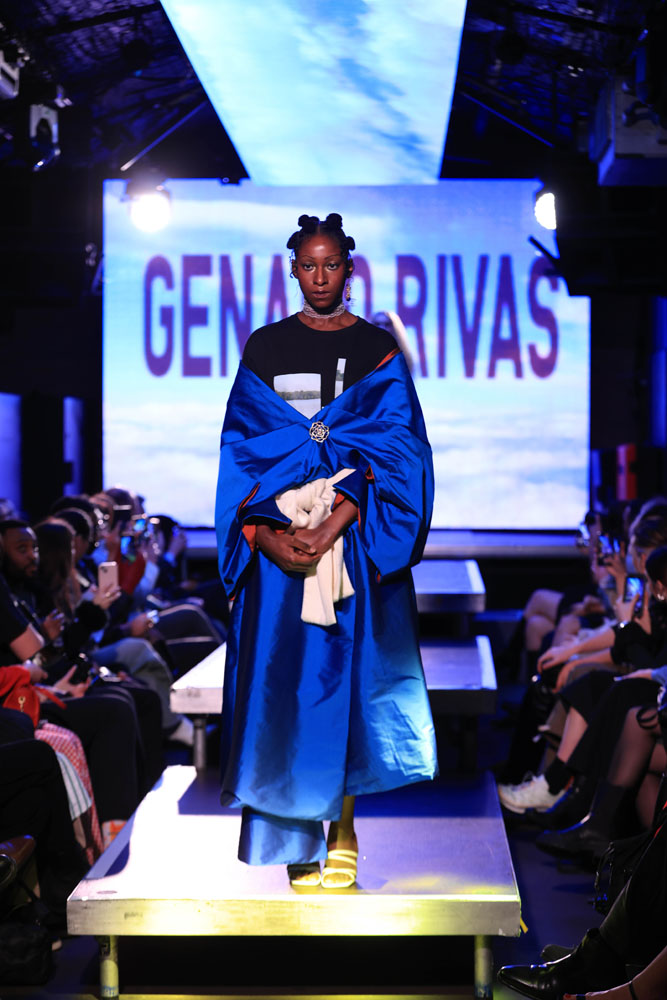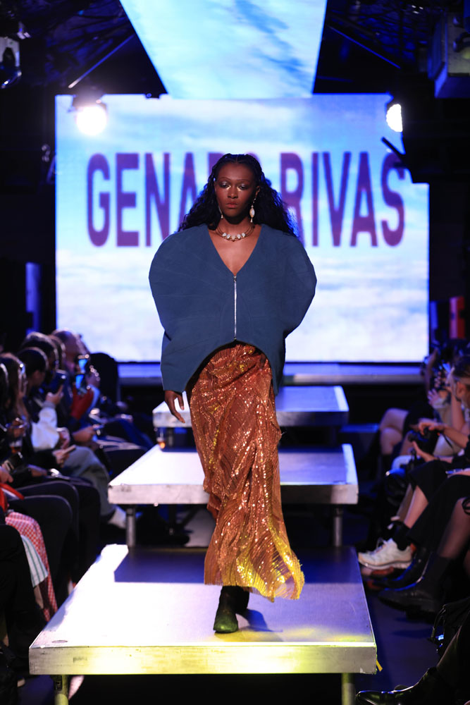 Prior to his London Fashion Week debut, Genaro Rivas was honoured as part of the London College of Fashion’s Postgraduate Class of 2024 and had the privilege of meeting with the Duchess of Edinburgh, further solidifying his status as a rising star in the fashion world.