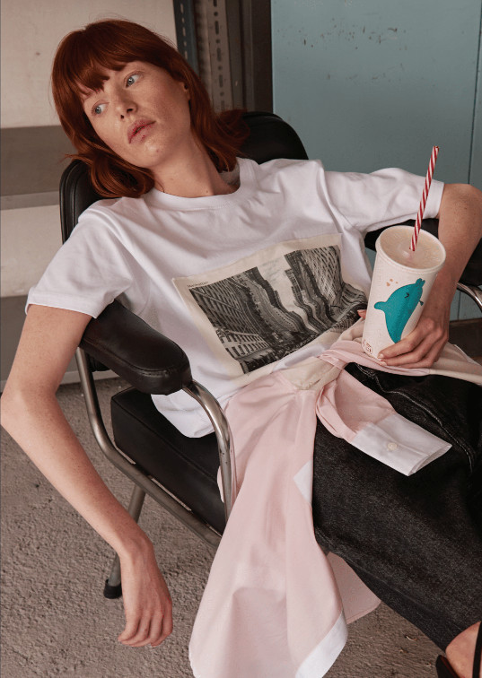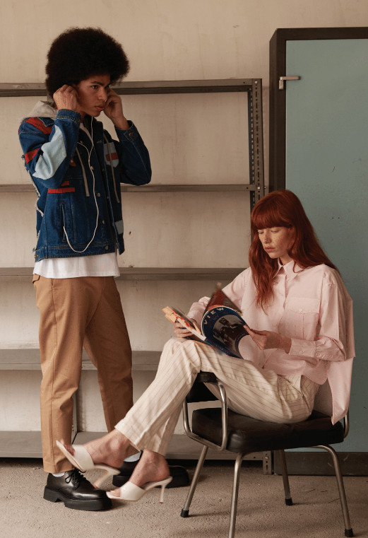 Keeping an authentic colour palette of the 1990s the collection boosts double denim blues, soft pastels hit with the sharpness of a high contrasting red that gives a sense of colour blocking.