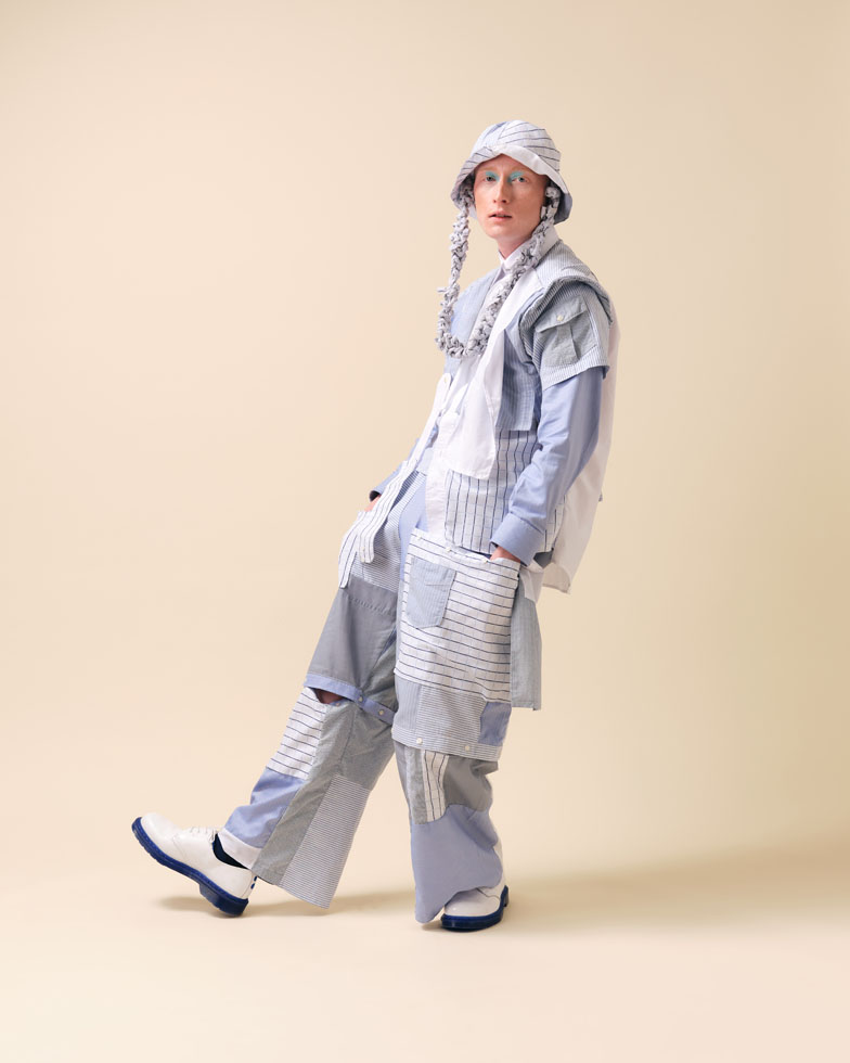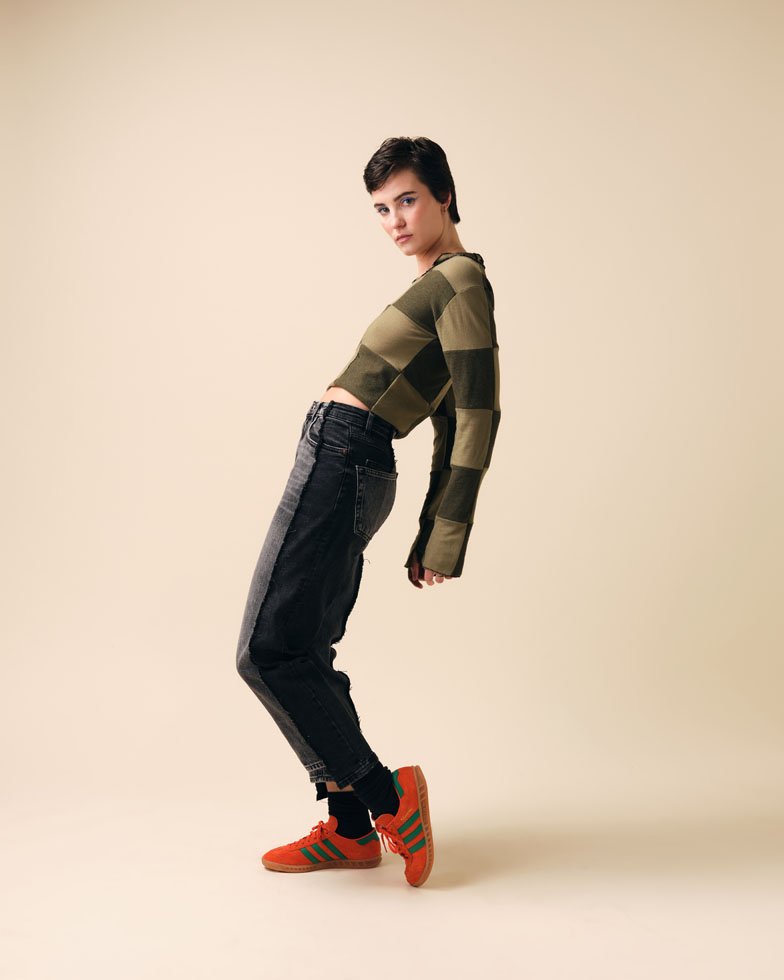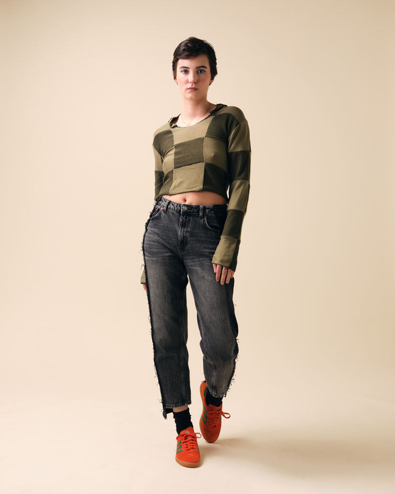 The range of 28 outfits were hand crafted by students at Graduate Fashion Foundation member universities across the UK as part of the Crisis x Love Not Landfill Upcycling Design competition, challenging emerging designers to give new life and increase value to secondhand clothing by upcycling into new innovative outfits. The designers were asked to use only secondhand clothing with no virgin fabrics to create their looks and to ensure their designs fit three dress sizes by using inventive modular design or fastening types, ensuring there is a wider offering for every Crisis store customer.
