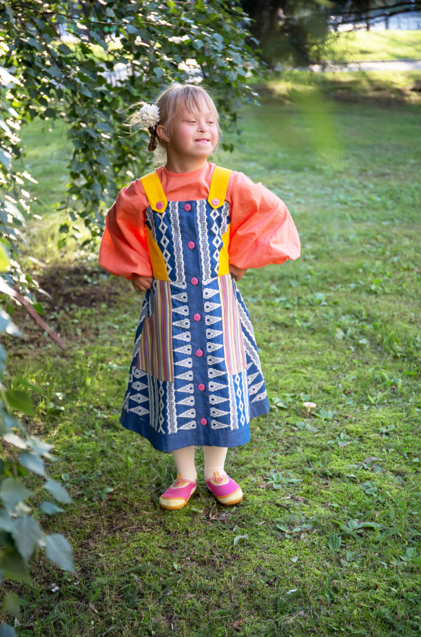 In 2013 my daughter Polina with trisomy 21 syndrome was born. I met the other parents who had children with special needs and joined the noncommercial association “Raduga”. My desire to create clothes didn’t leave me at that period. Finally, supported by the association “Raduga” I got an opportunity to make collections for the members of this organization, both children and parents.