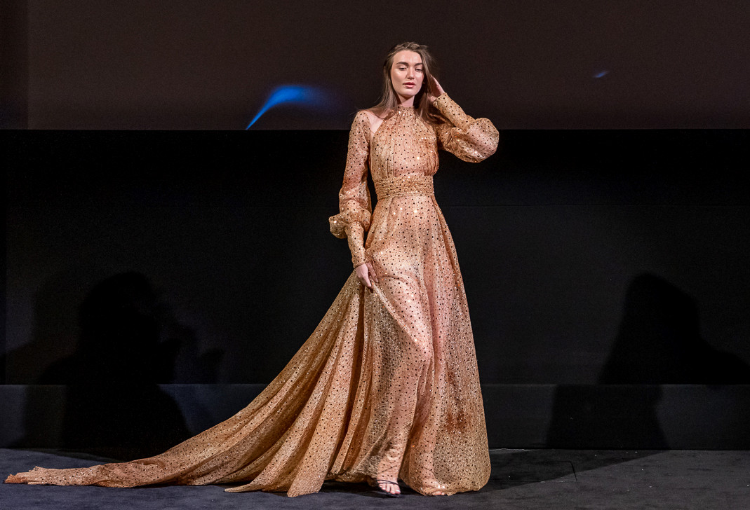 Jad Adams, a French-Syrian couture fashion designer has brought sustainable fashion to the forefront by cutting and repurposing couture dresses that are worth thousands of pounds at Cannes Film Festival, Venice Film Festival, and now… at the GSFAs. Jad has paved his professional design career by working with international fashion houses such as Dolce & Gabbana and Elie Saab for several years, before launching his own showroom and his first atelier in Paris, attracting a range of international clientele, including royalty. Jad was able to efficiently and beautifully cut and repurpose the dresses with cutting-edge speed, a triumphant symbol of our global shift and focus into sustainability, and the speed in which Sustainable Blockchains have the ability to solve problems, and change our world for the better.