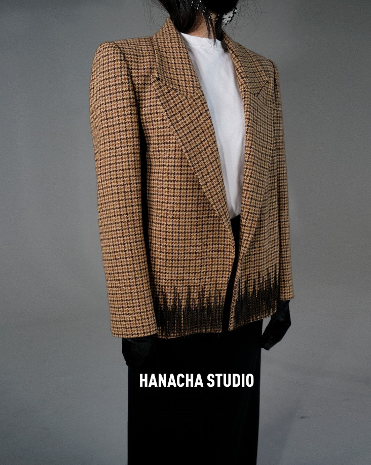 Hana spent much of her time researching the theory of opposites and fundamental design area, showcasing simplicity and complexity. Hanacha Studio’s AW21 collection will consist of timeless pieces launched several years ago, but still wearable yet elegant with a hand-crafted embellishment. The colour palette is more acceptable as well, and the silhouette oozes classicism.