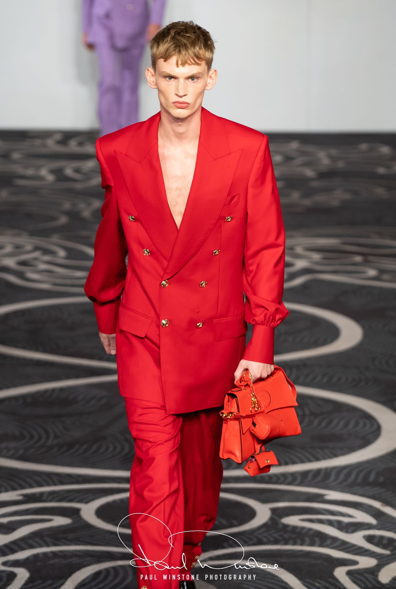This collection was definitely for the rockstar who married into aristocracy ! Beautiful tailoring classic fabrics blended into futuristic textures and textiles . 50s style double-breasted suits along with plastic miniskirts, see-through share dresses lots of skin ready for a night out at the top Club in town . Two tone tweed suits tuxedos , Full length overcoats everything man about town ,high fashion skirts and dresses mixing old and new with exciting bold colours.