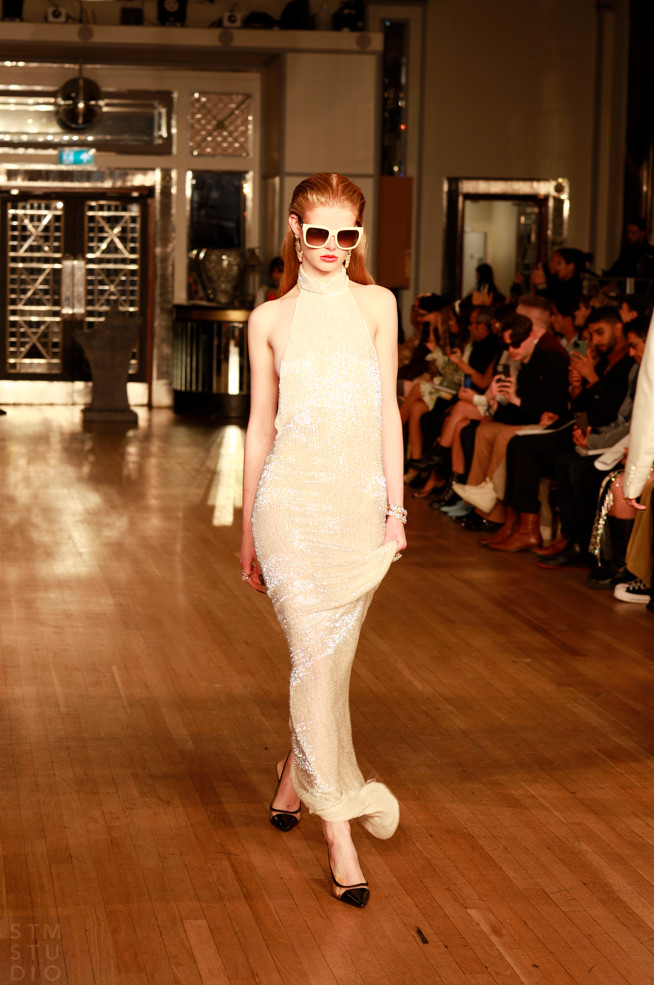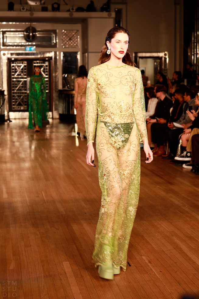 Helen antoney proves there are no limits when it comes to designing clothes for the Rich and famous or the street kids this is truly a cross between 80s Pop and Savile Row tailored suits as I’ve said before this is for the popstar that’s married into the aristocracy, from tweed to shiny fabrics modern and old combined to create a truly memorable clothing experience brilliant.
