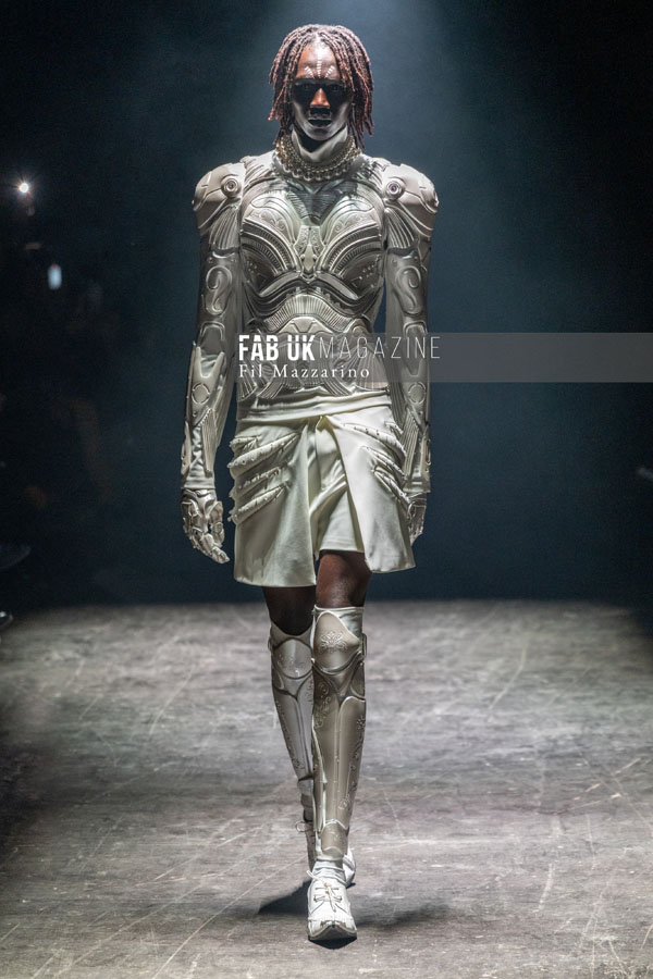 London Fashion Week SS26 witnessed a striking showcase as Hengdi Wang unveiled “EXOGENESIS”, a collection that redefines fashion as both cosmic narrative and cultural memory. Our photographer Fil Mazzarino was on-site to capture the futuristic silhouettes and intricate craftsmanship in stunning detail.
