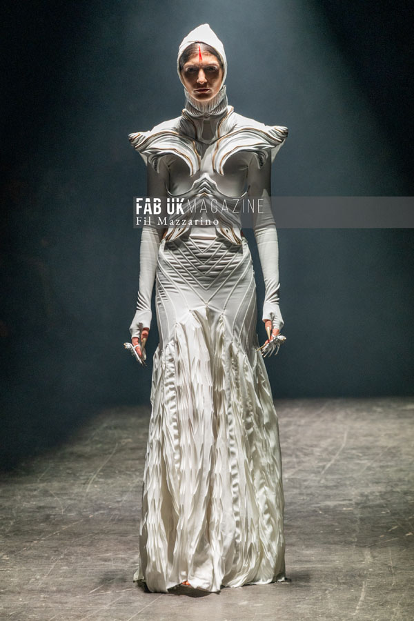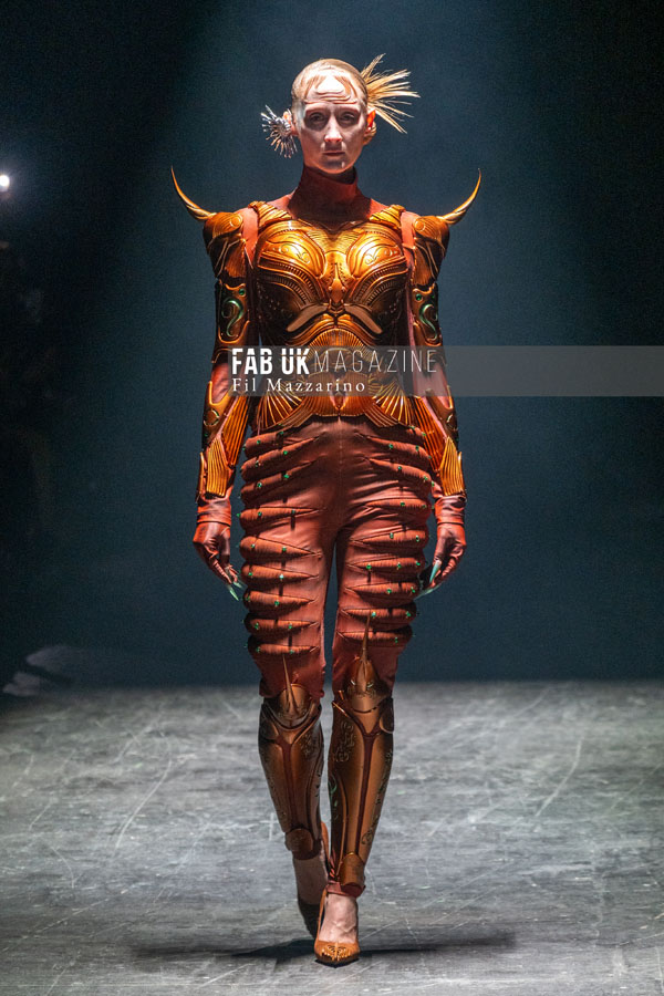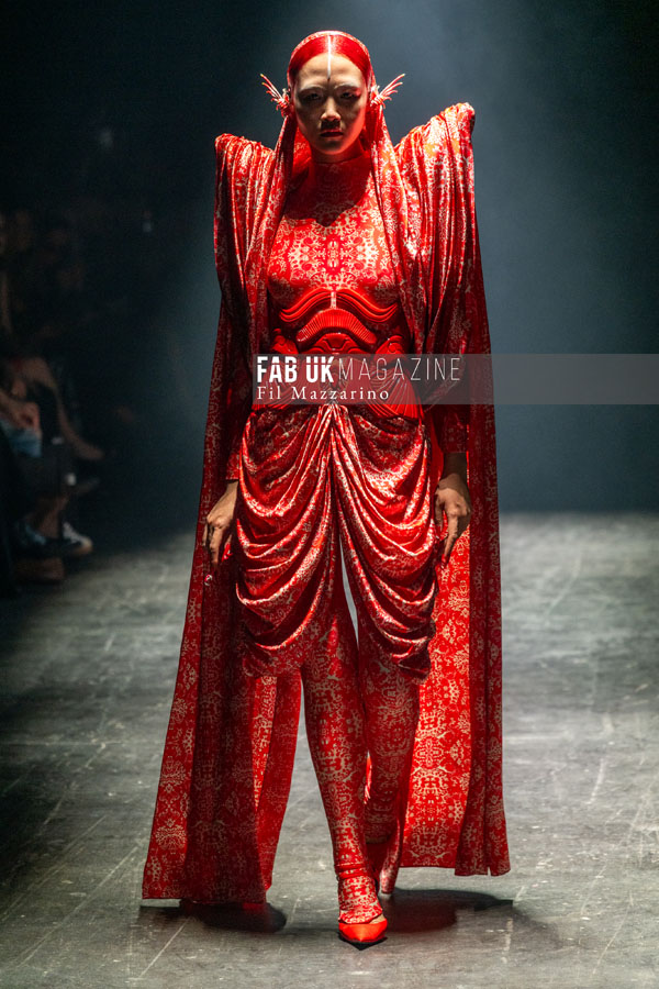 London Fashion Week SS26 witnessed a striking showcase as Hengdi Wang unveiled “EXOGENESIS”, a collection that redefines fashion as both cosmic narrative and cultural memory. Our photographer Fil Mazzarino was on-site to capture the futuristic silhouettes and intricate craftsmanship in stunning detail.