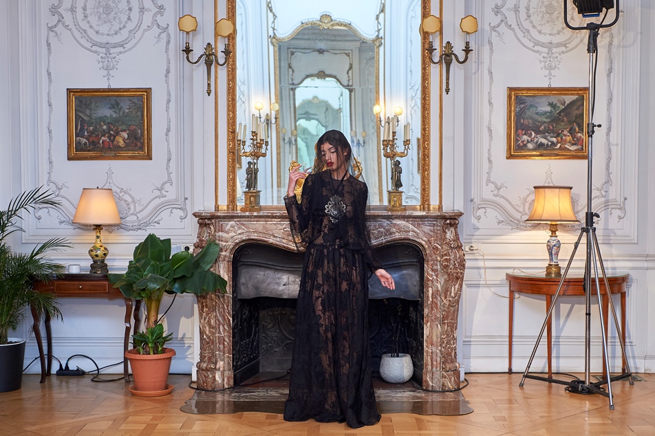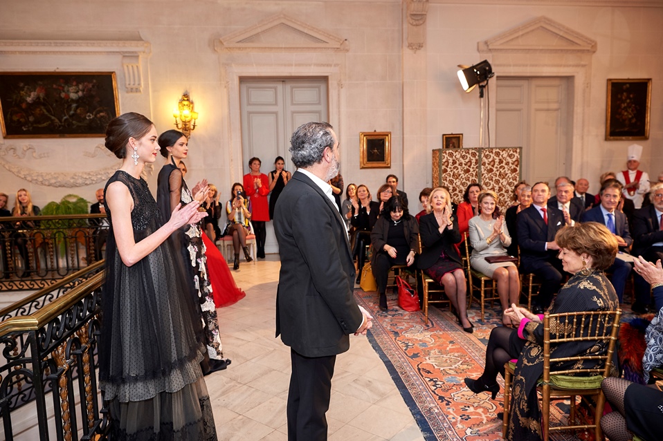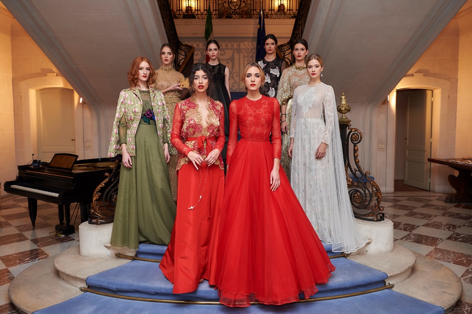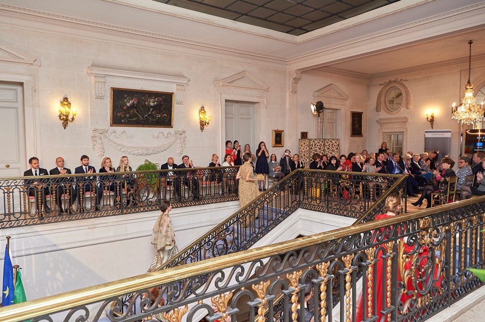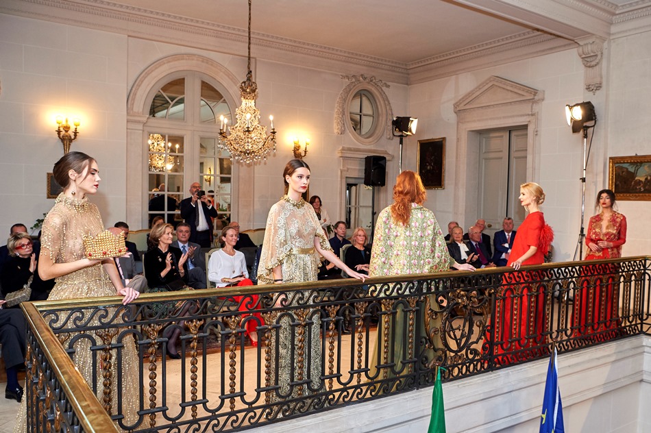 In the charming rooms of the residence of the Italian Embassy in Brussels, the designer Michele Miglionico with the elegance and tradition of his High Fashion celebrated the event “Sacred Basilicata”