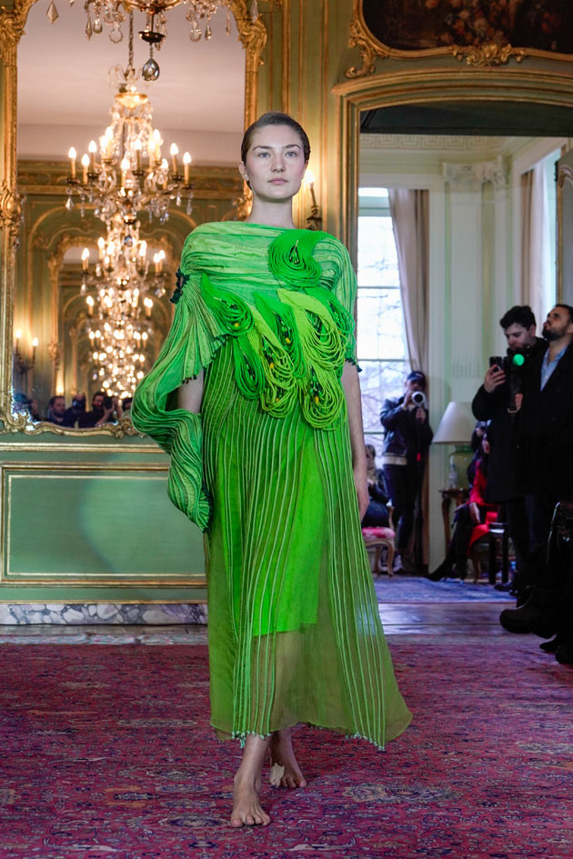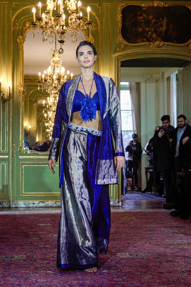 “I am Nature” is a mature blend of more wearable yet as much creative garments, with a fine balance of precious hand-woven fabrics from different states of India with new hand work; a powerful expression of what the designer has inside and her deep connection with Nature.