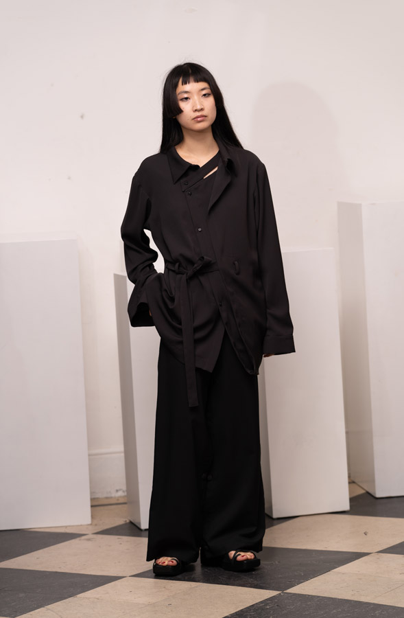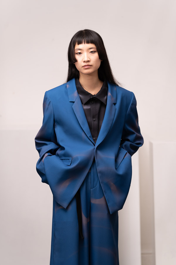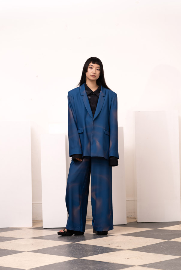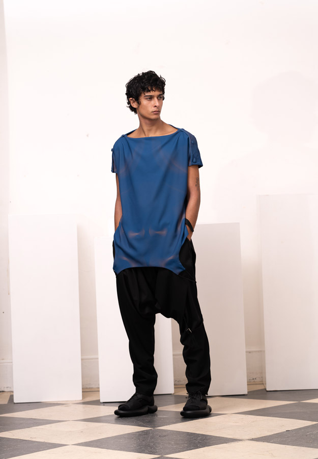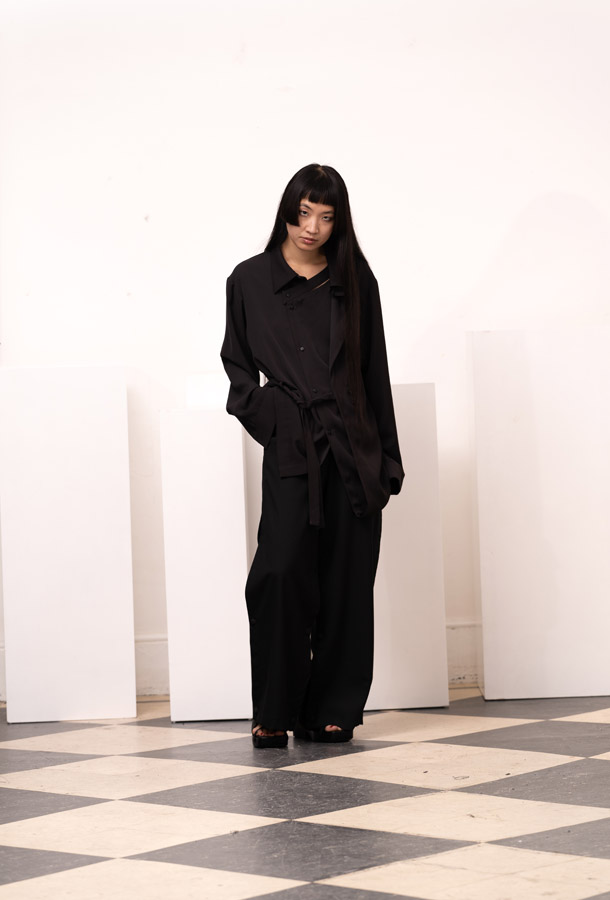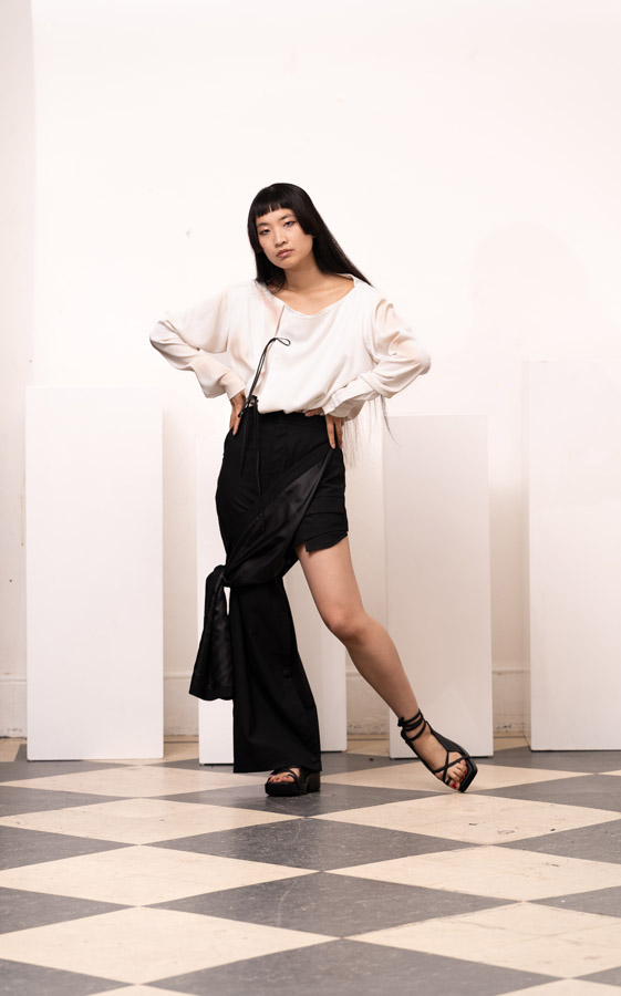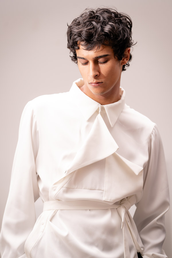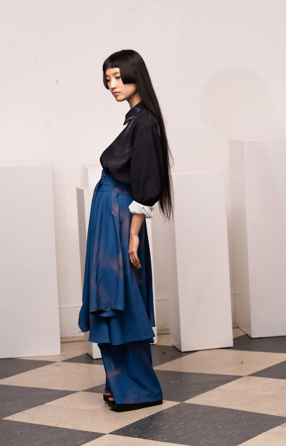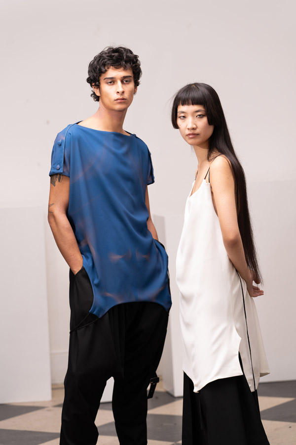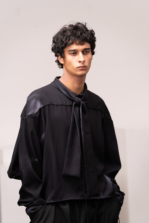 This season, Kuo Wei’s brain MRI images are reimagined and transformed into prints on the garments, creating a surreal yet meaningful vibe that echoes the brand’s abstract deconstruction approach. Beyond the prints, this collection also brings INF’s perspective on sustainable fashion to the forefront. Kuo Wei believes that while recycling old clothes and upcycling are great, he’s more interested in addressing fashion waste before it even happens. That’s why INF’s famous multi-wear series has reached its peak this season. Through innovative design, he gives a single garment multiple ways to be worn, such as turning a bag into a T-shirt or a skirt into pants. “By giving clothes multiple identities, we’re offering more than just a fashion item. Besides being stylish and functional, we hope it can adapt to various occasions and accompany the wearer for a long time, thereby reducing fashion waste.